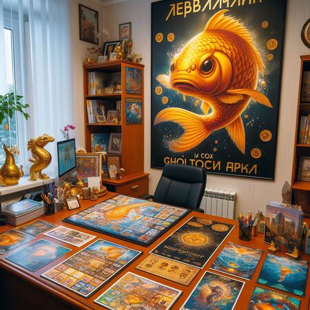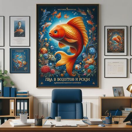 Офис с тематическими постерами дизайна Золотой Рыбки