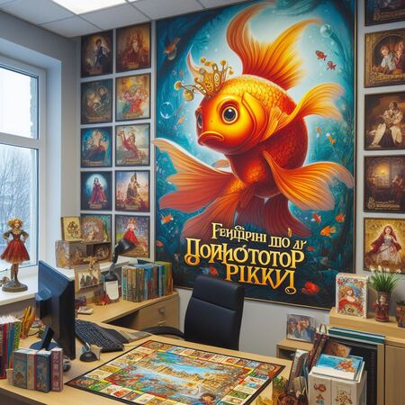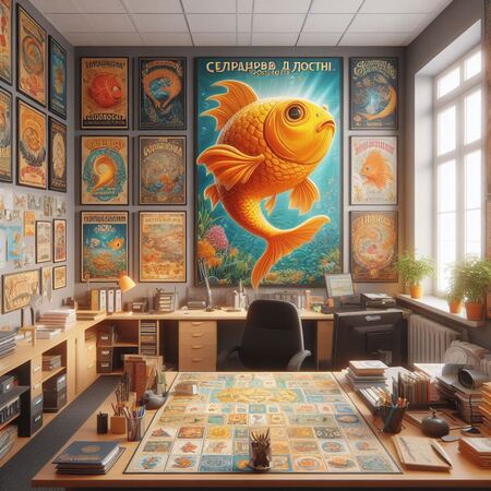 Офис с тематическими постерами разработки дизайна Золотой Рыбки