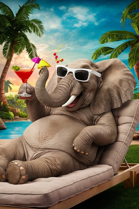 Обложка проекта сгенерирована в нейросети Ideogram от Google. Промт: A whimsical and fantastical photo of a majestic elephant lounging on a plush sunbed, sipping a colorful cocktail with a tiny umbrella. The elephant is wearing a playful sunglasses and has a wide, contented smile on its face. The background features a lush, tropical paradise with palm trees, a clear blue sky, and a vibrant sunset. The overall mood of the image is quirky and lighthearted, perfect for a fun and imaginative scene., photo