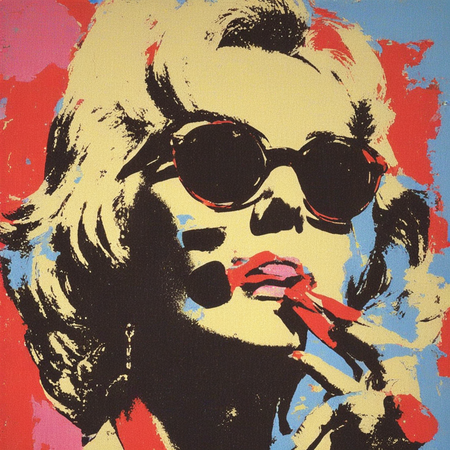 В качестве первых промптов для проверки того, распознала ли нейросеть нужный стиль или нет, я решила использовать один из наиболее распространенных сюжетов в работах Энди — портрет Мерлин Монро.
