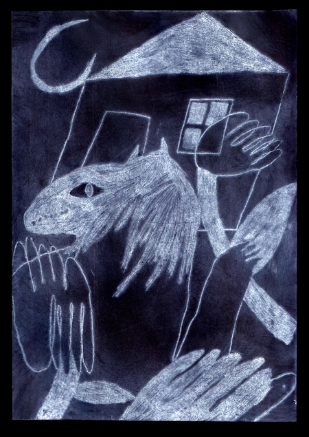 В этом модуле я осваивал глубокую печать, в частности сухую иглу. Темой для серии иллюстраций, выполненных в этой технике стало поверье, согласно которому, если в молодом возрасте умирает муж, то его жена по дороге на кладбище должна сыпать маковые зерна — так супруг не сможет вернуться из могилы домой, пока не сосчитает все выросшие из них маки.