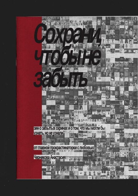 Все мы каждый день делаем одно и то же — зажатием кнопок фиксируем информацию для дальнейшего использования, чтобы не забыть. Один вопрос: как часто вы возвращаетесь к ней? Я тоже почти никогда. Сейчас у вас есть уникальная возможность взглянуть на интересные мне темы из злачных мест переполненной галереи. В этом зине я собрала некоторые темы, о которых я хотела узнать побольше, и вот свершилось!