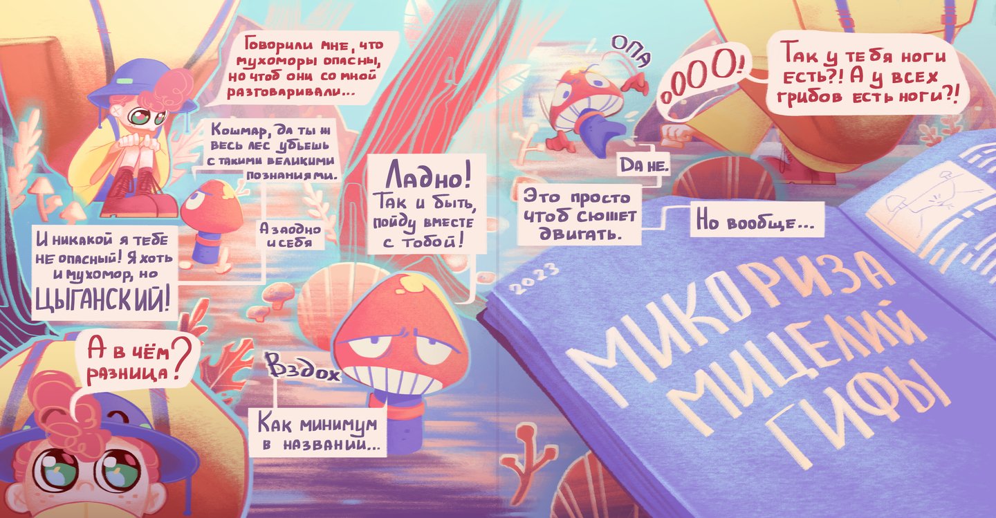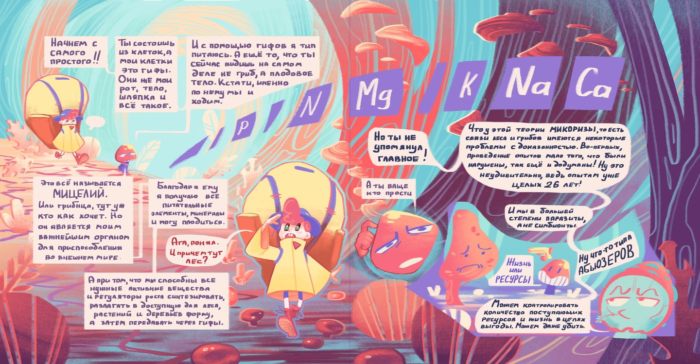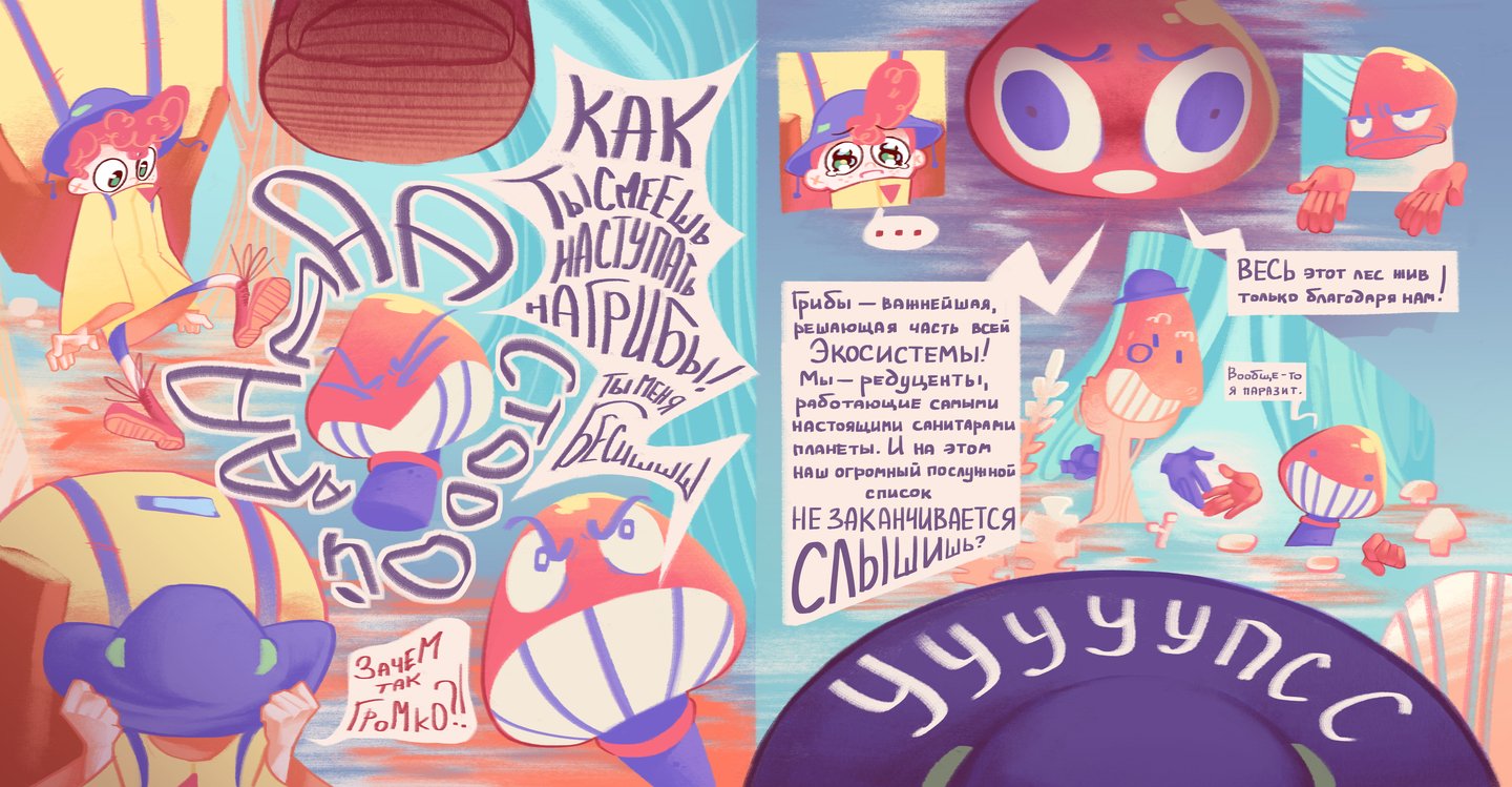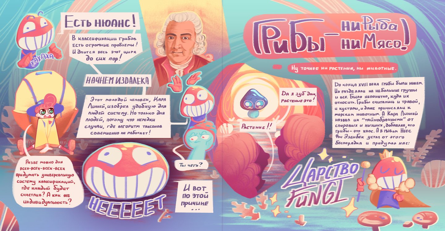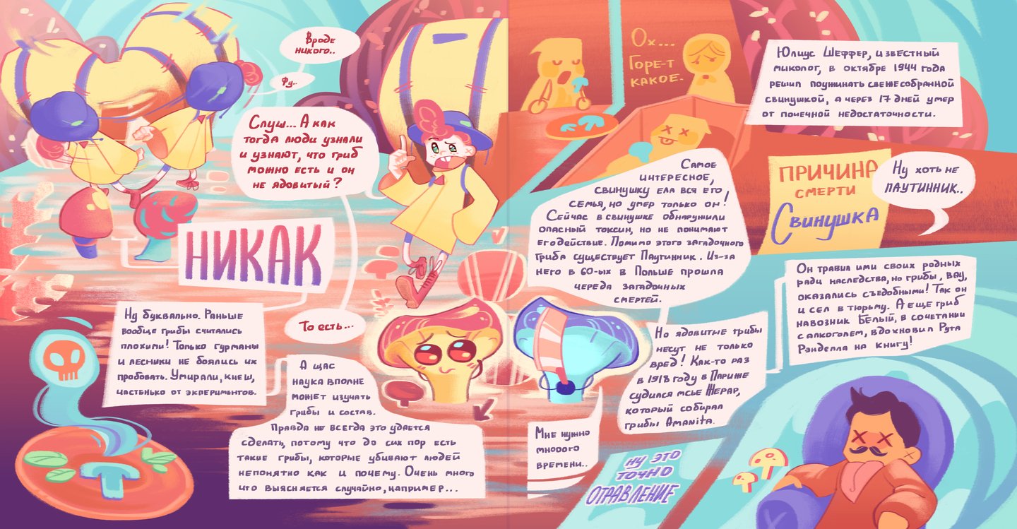 «Все грибы съедобны, но есть нюанс» — это нон-фикшн комикс о микологии и великом царстве грибном.