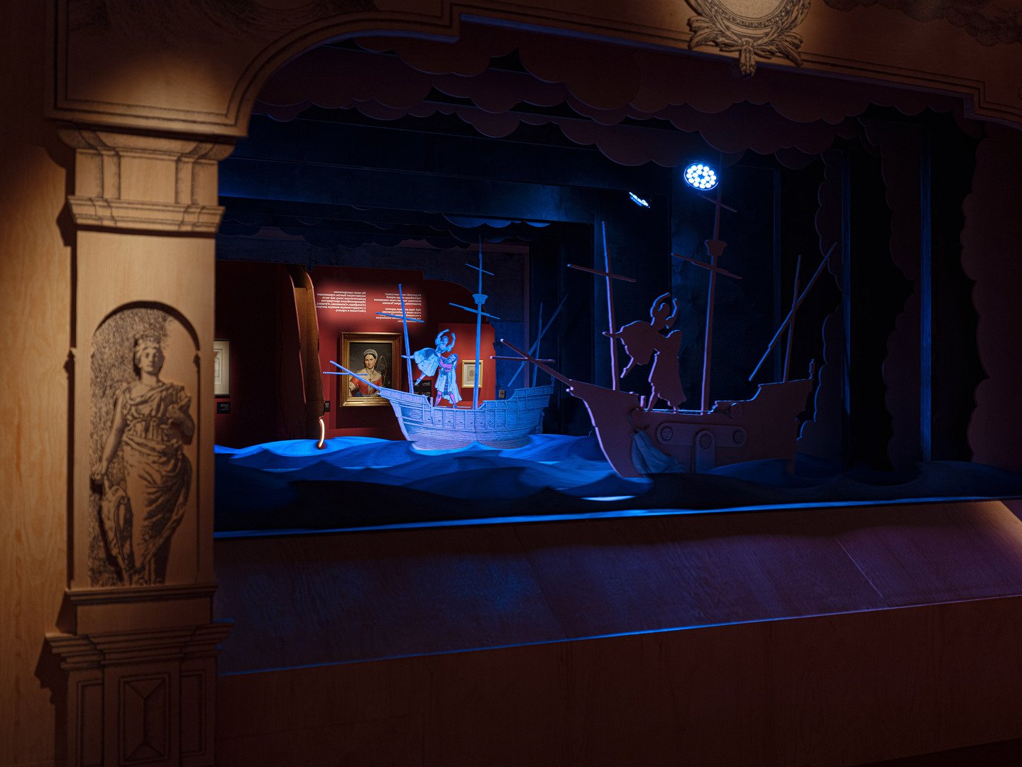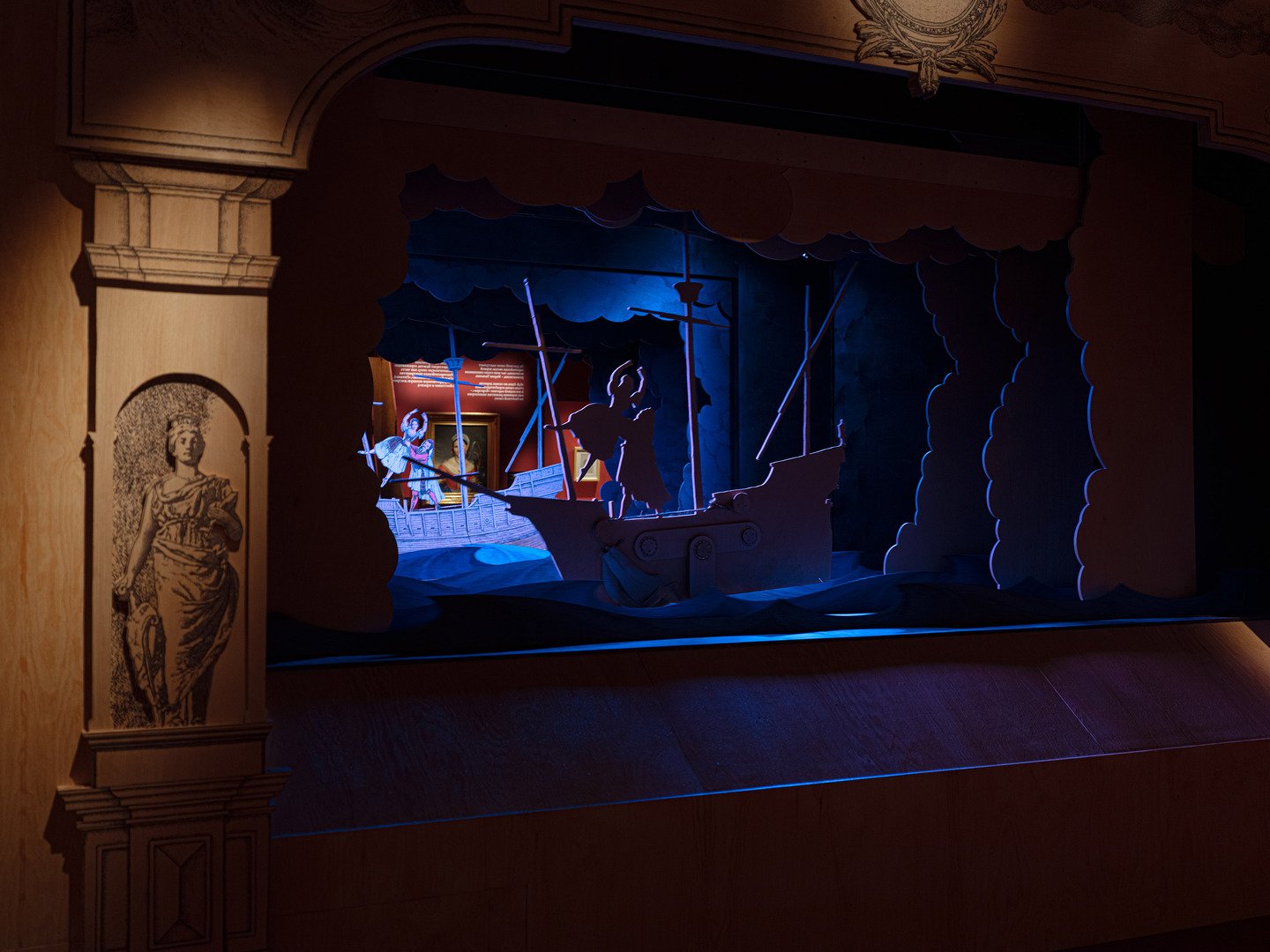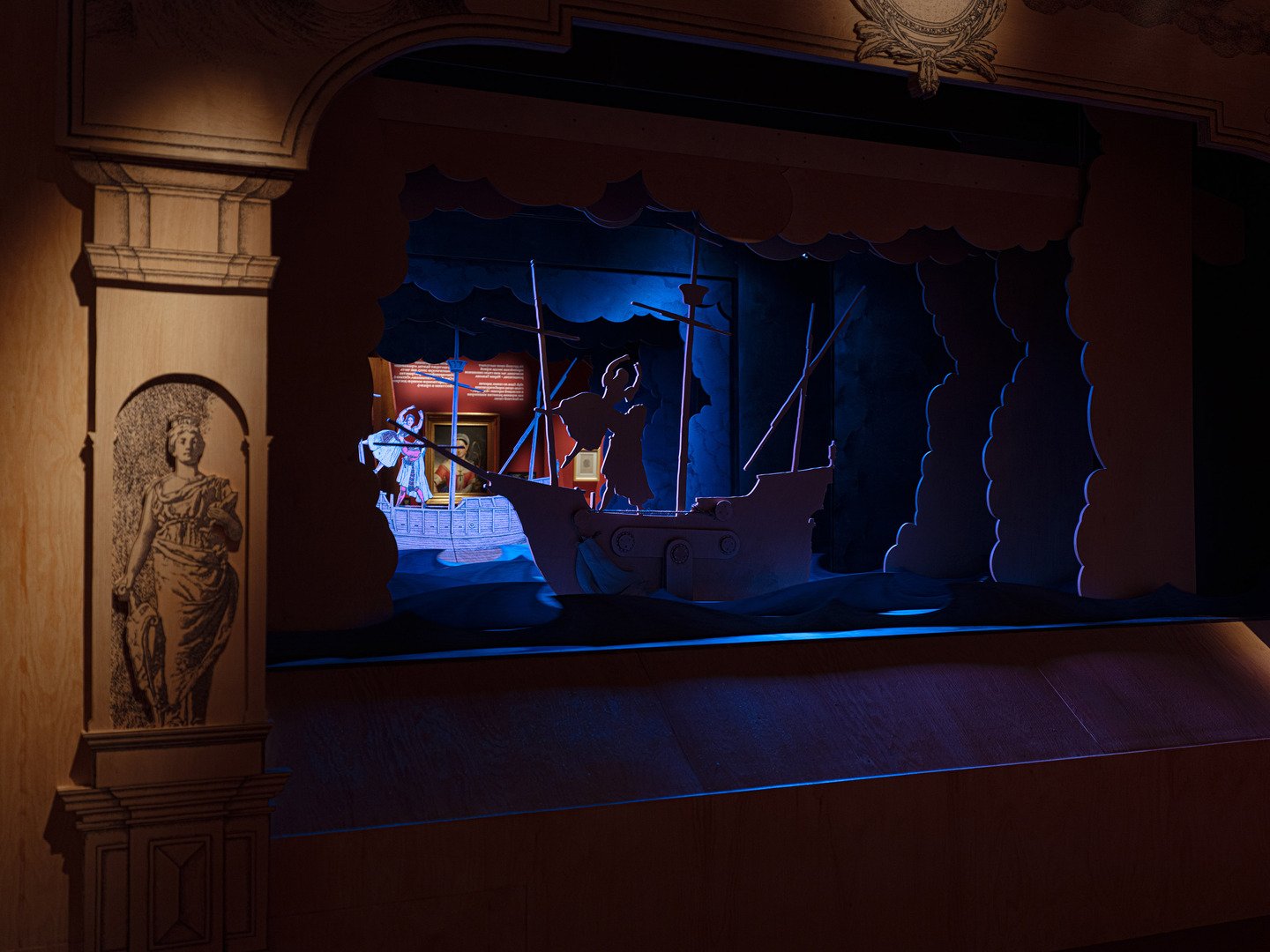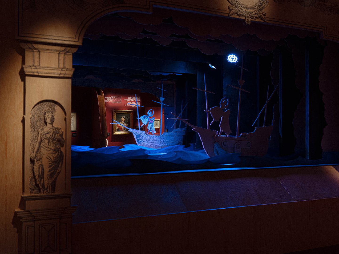 Кинетическая инсталляция «Корсар» демонстрирует заключительную часть одноименного балета в динамике, и воссоздаёт атмосферу театральной машинерии XVIII–XIX вв.