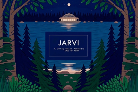 Promt: generate a logo on a white background for the Jarvi restaurant — this is a gourmet restaurant, which is located in a picturesque place in the middle of the Karelian lake, remote from civilization. The uniqueness of the place is that it can only be reached by water transport.