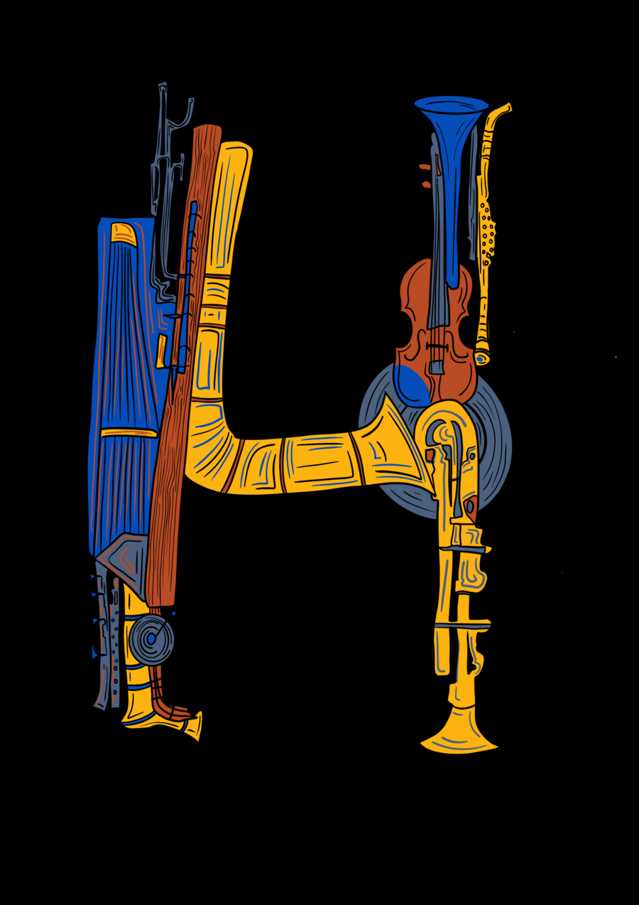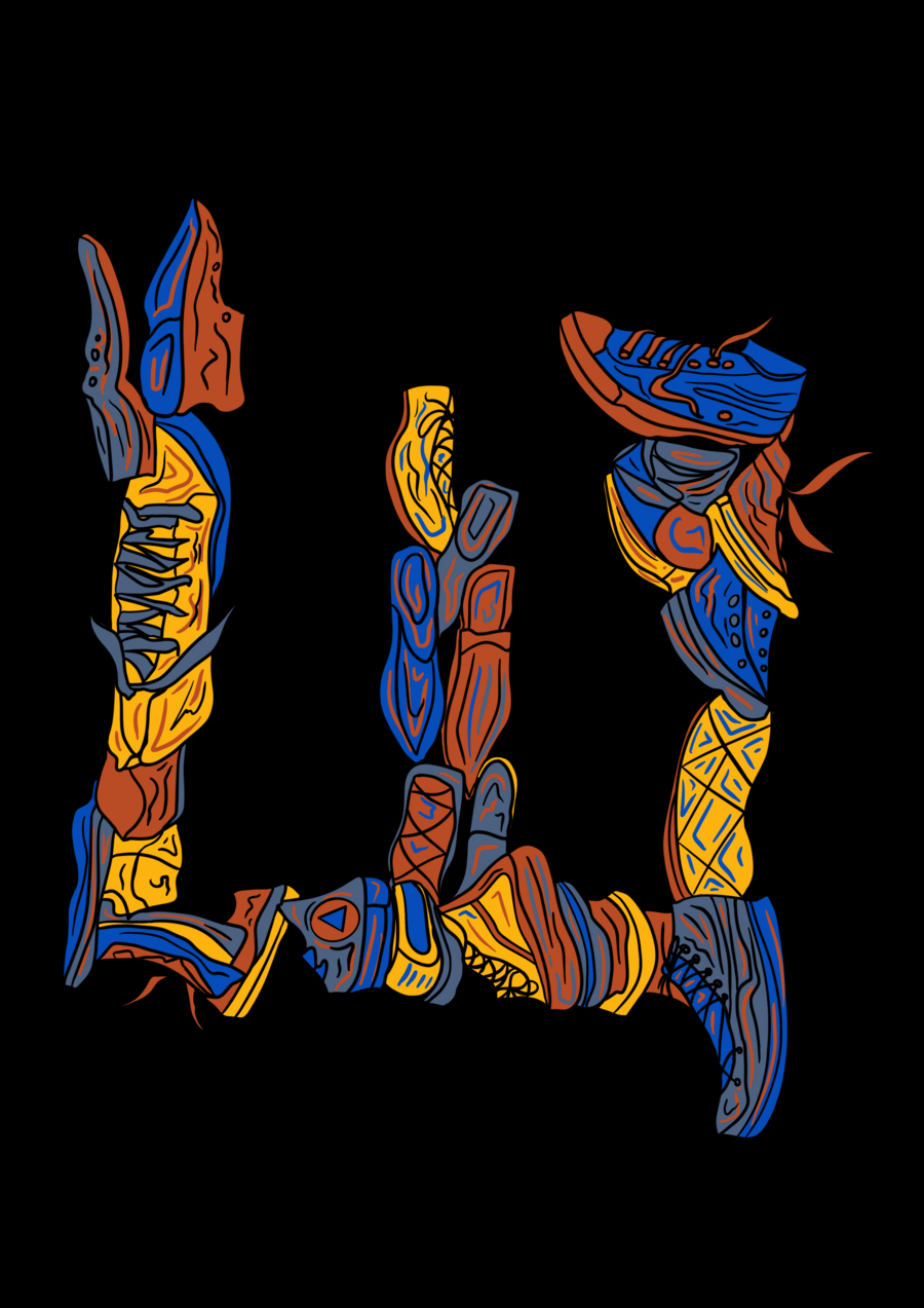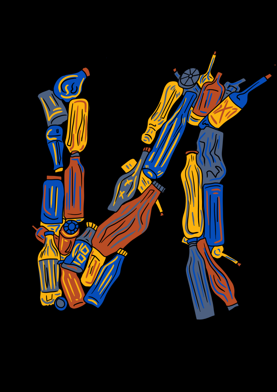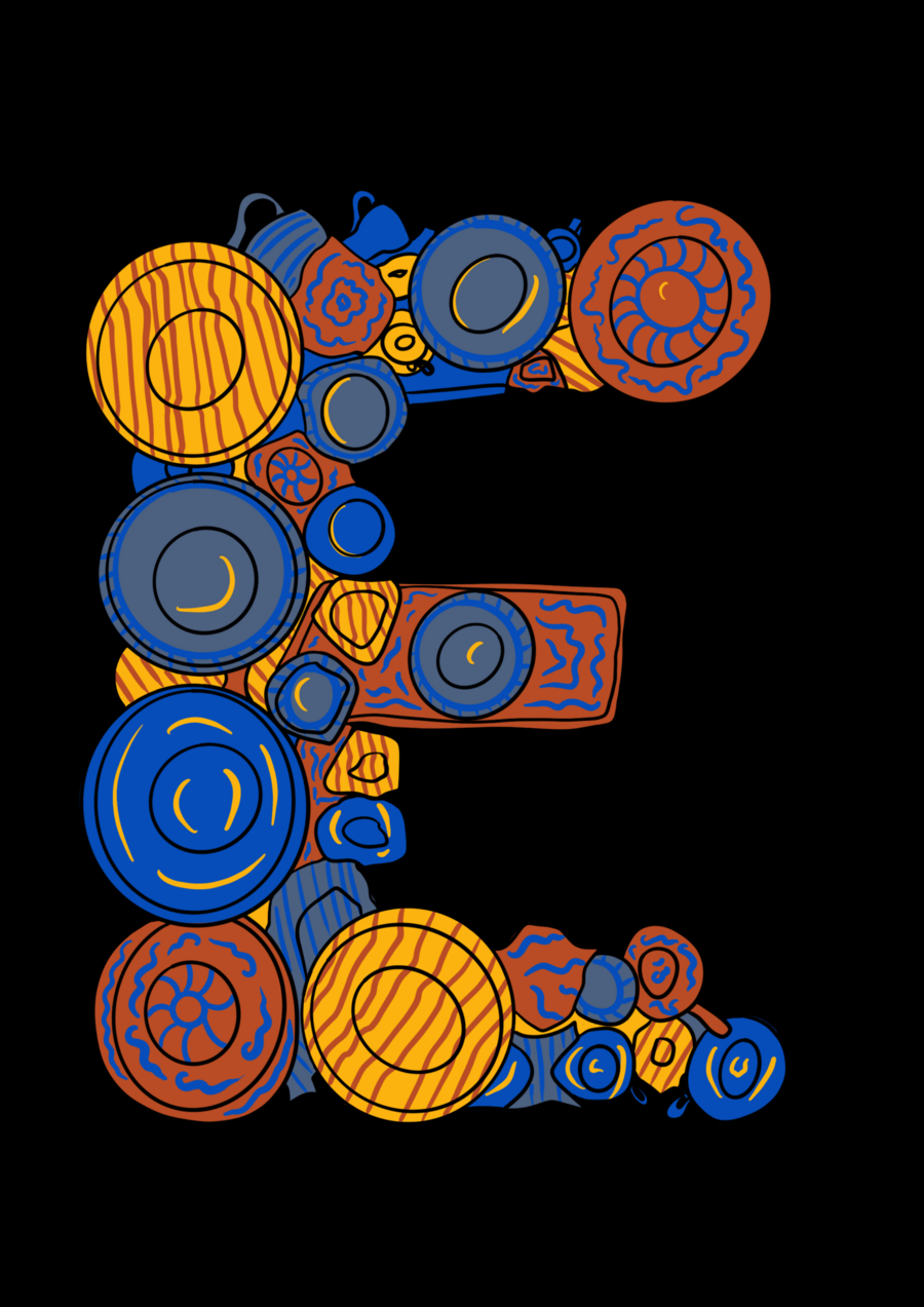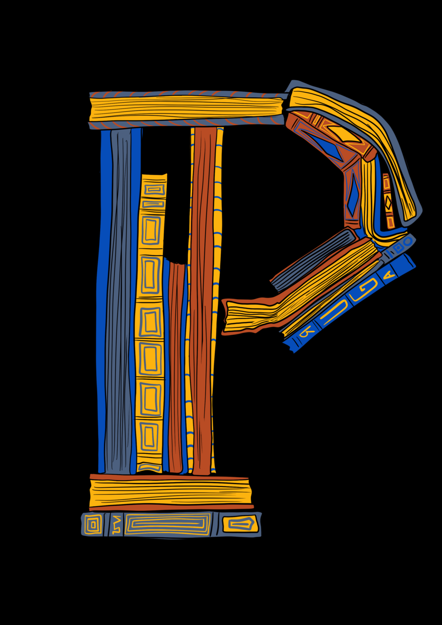 Буквицы, которые складываются в слово «хранилище». Иллюстрации представляют собой вещи, которые хранятся у людей, от походных принадлежностей до доспех рыцаря.