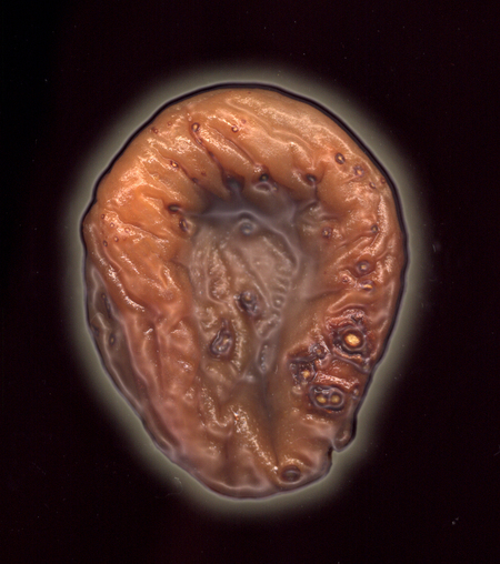 Серия цифровых работ «Эфирные тела» является не столько художественной практикой, сколько психологическим опытом погружения в пространство внутреннего восприятия. При создании таких образов используется технология сканирования природных (реже антропогенных) форм и структур. Отсканированные объекты (плоды, раковины, грибы, человеческие руки и др.) цифровым методом преобразуются; иногда такое преобразование носит весьма деликатный характер, иногда значительный. Степень преобразования измеряется по шкале от 1 до нуля, где 1 означает неизменённый скан, а нуль символизирует полную потерю узнаваемости. Такой творческий метод и является сутью предлагаемой серии.