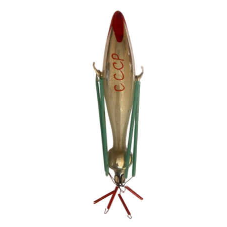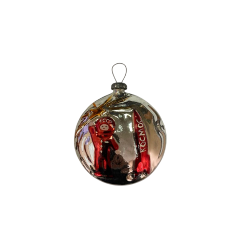 Шар с космонавтом и ракетой. // Агитационная ёлочная игрушка «Красная звезда»