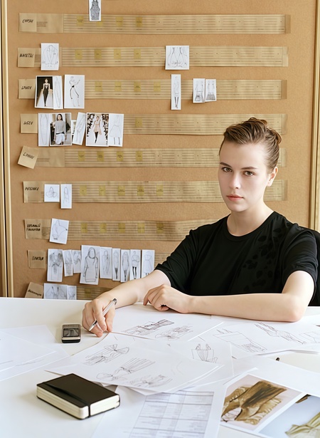 Катя: В понедельник в 9 утра я пришла. Алёна встретила меня сухо: «Я же просила Аркадия все отменить», — но, раз уж я здесь… Показала тему коллекции — XIX век. Мне дали задание: «Рисуй юбки». Алёна дала книги с закладками. Я села и начала работать.