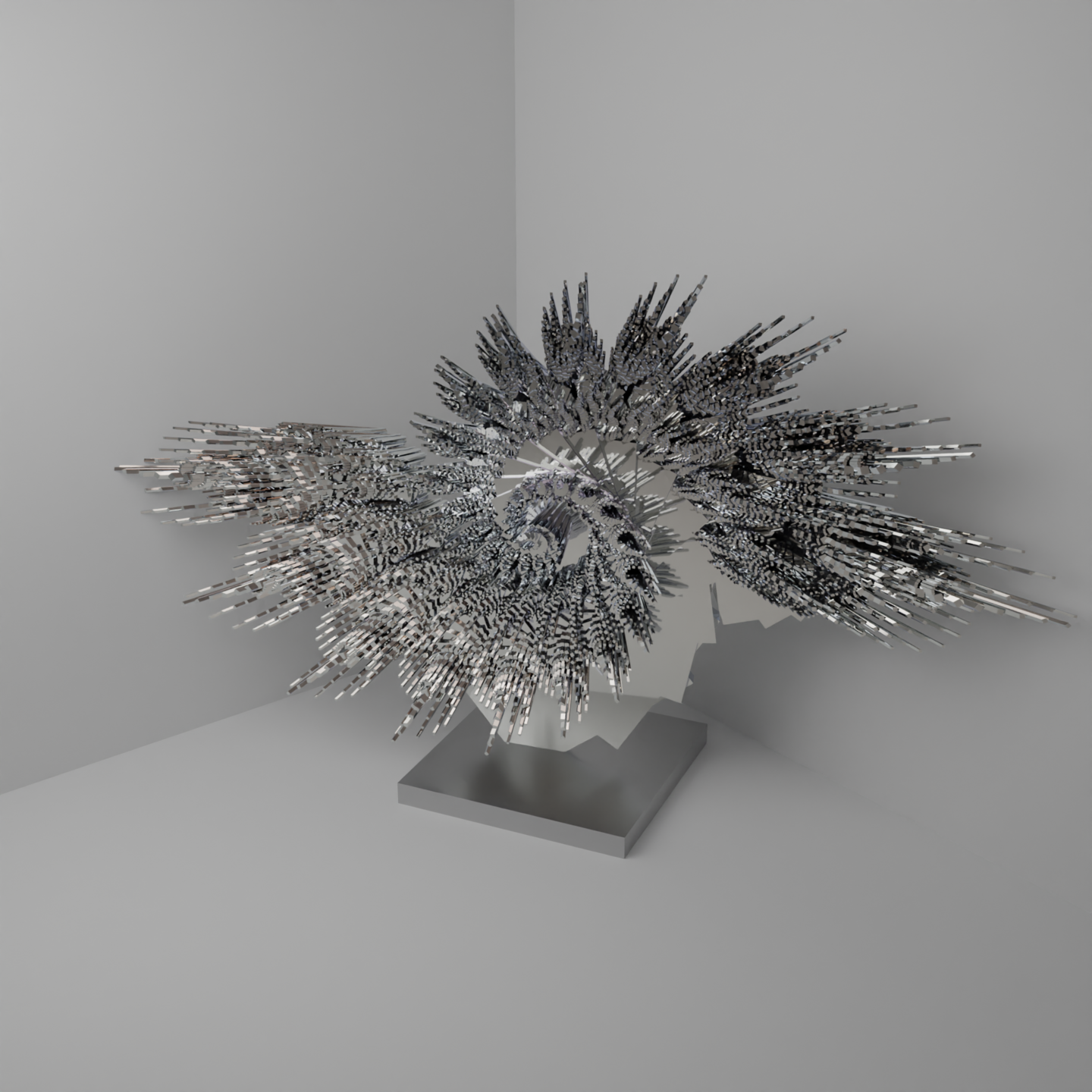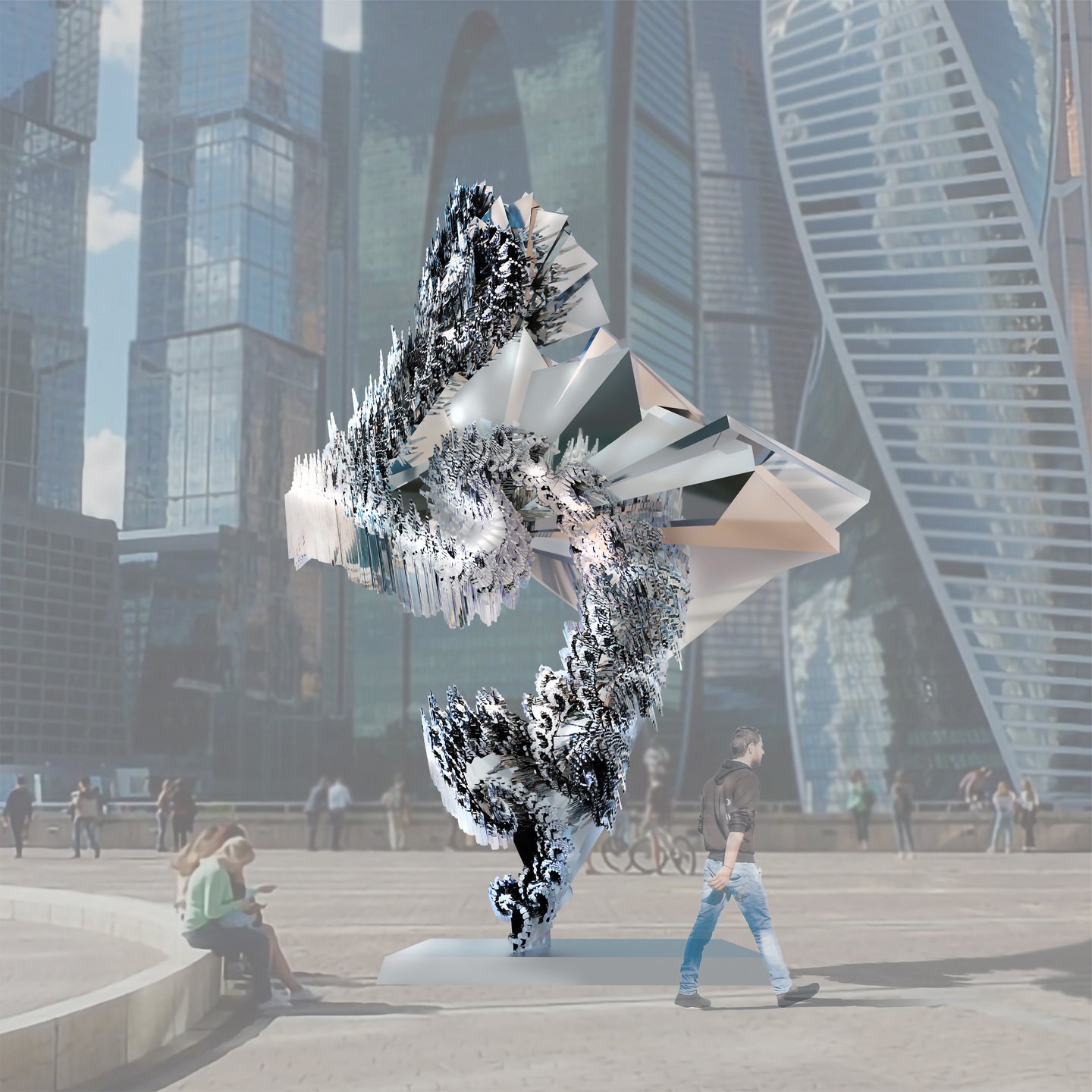 Серия из 5 объектов символизирует единство науки и искусства, служит подтверждением тому, что, как и прежде, «физики» и «лирики» не смогут обойтись друг без друга, и в современном мире есть место творцу, освоившему достижения науки и техники. Объекты-скульптуры созданы при помощи 3d программы и генератора фракталов, создающего структуры на основе формул и параметров. Результат программы художественно обработан вручную, технология создания скульптуры — литьё, материал — алюминий.