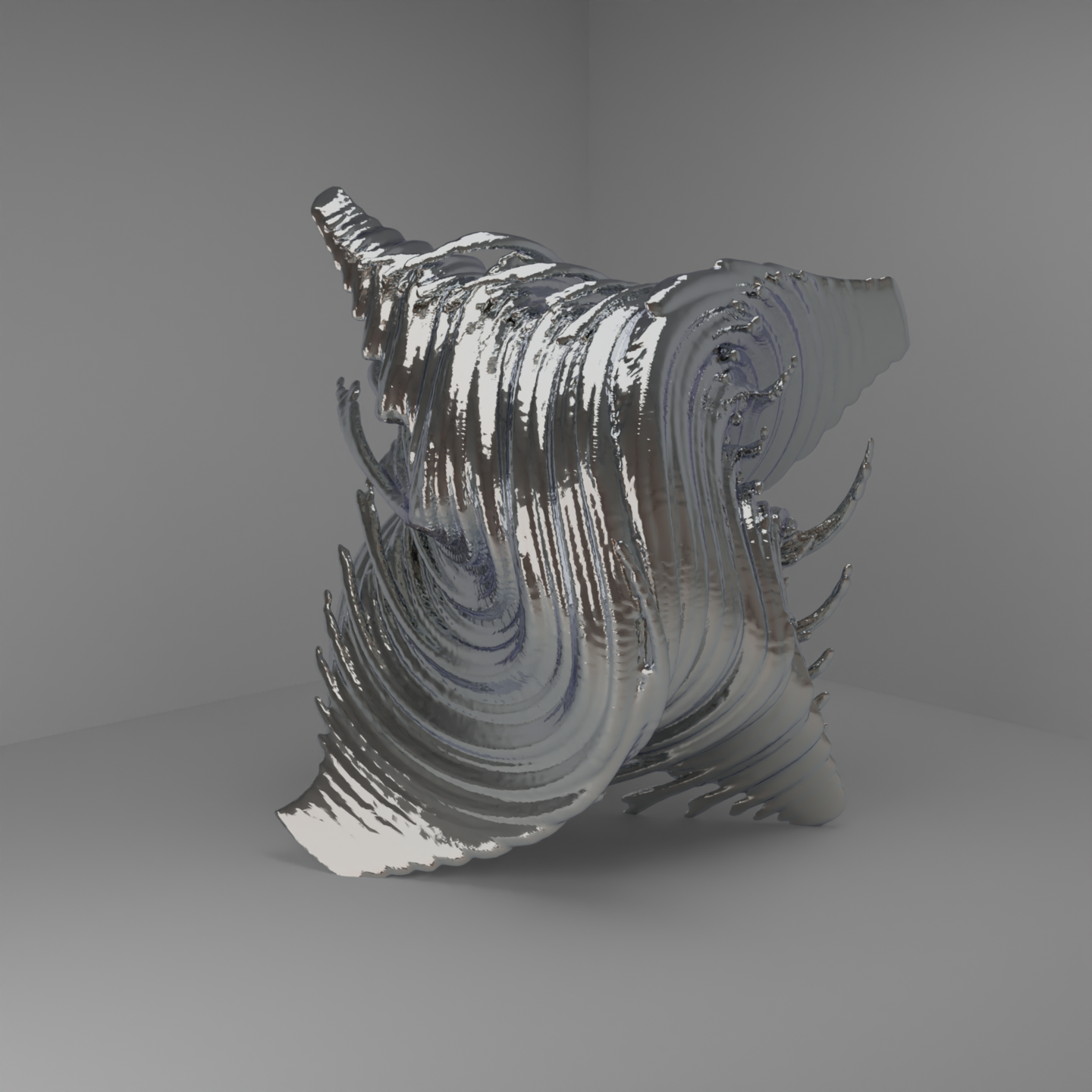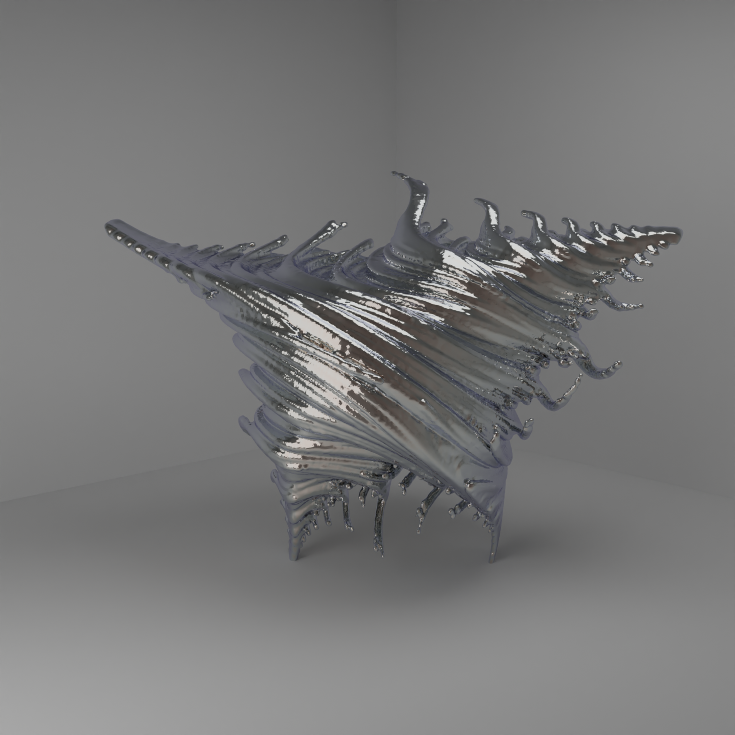 Объекты серии «Физики и Лирики» также созданы на основе фрактальных структур, сгенерированных при помощи программы, позволяющей создать визуализации математических формул. На основе полученных фигур и были смоделированы скульптуры.
