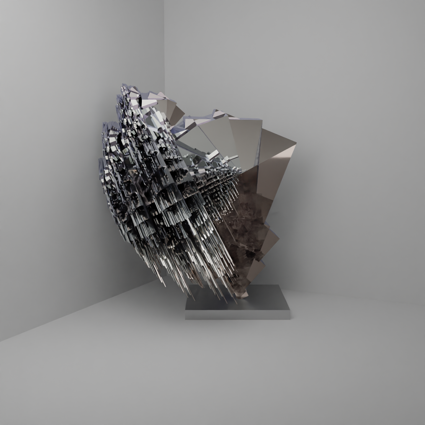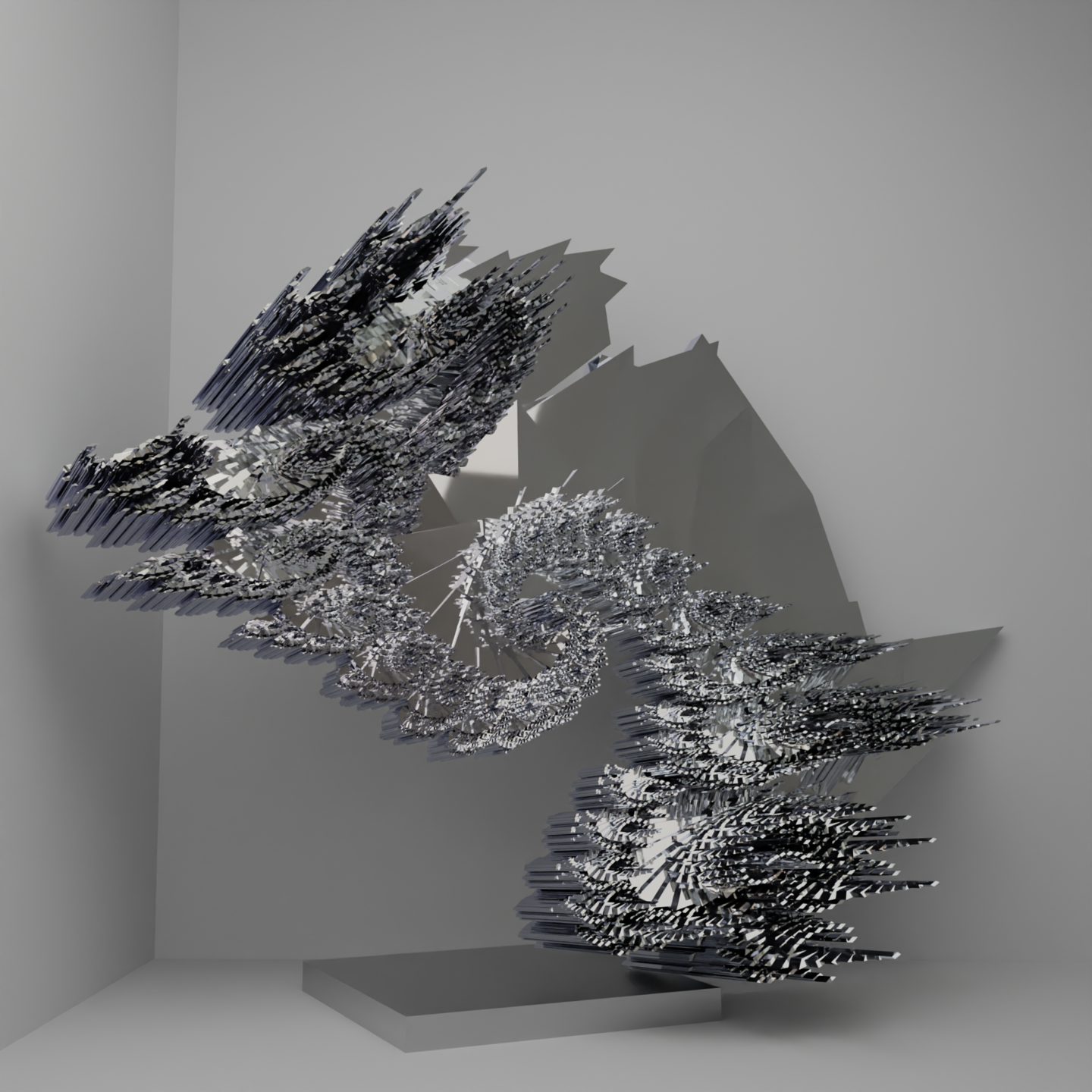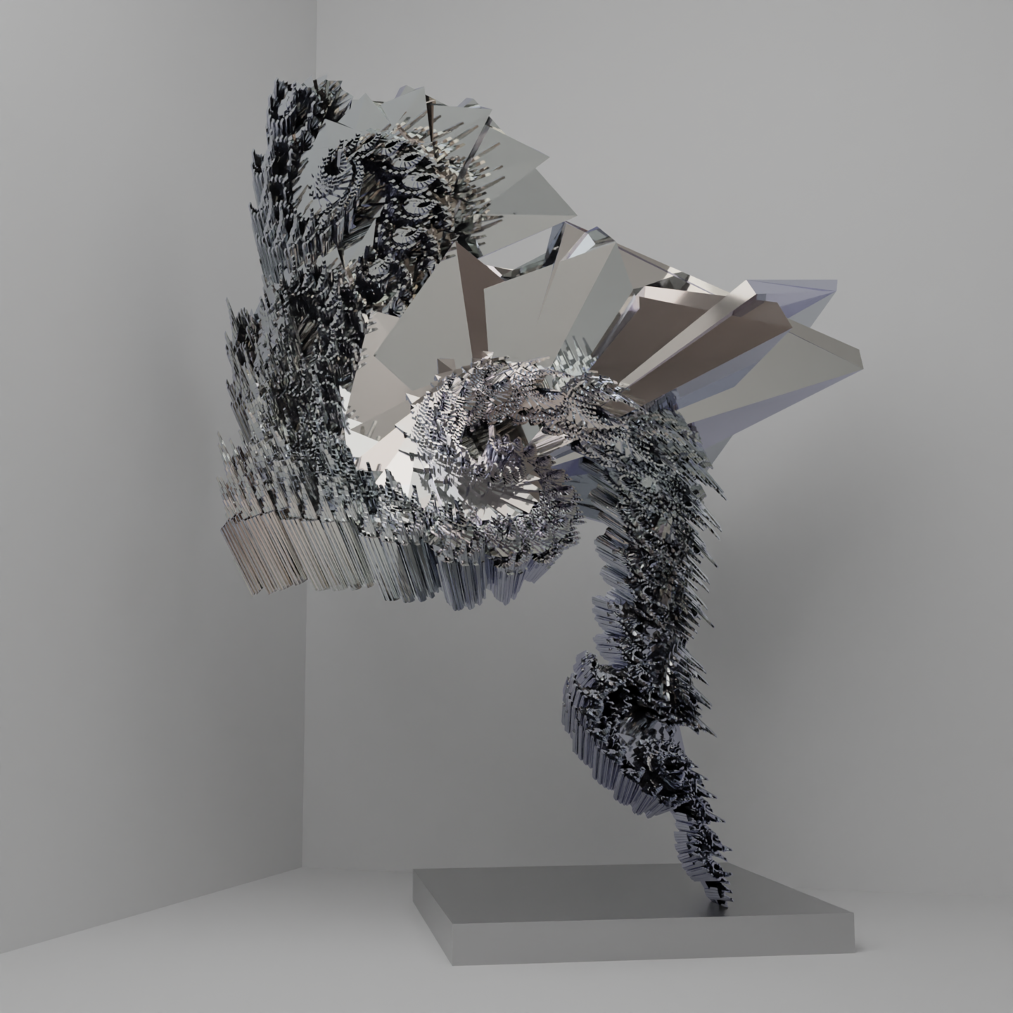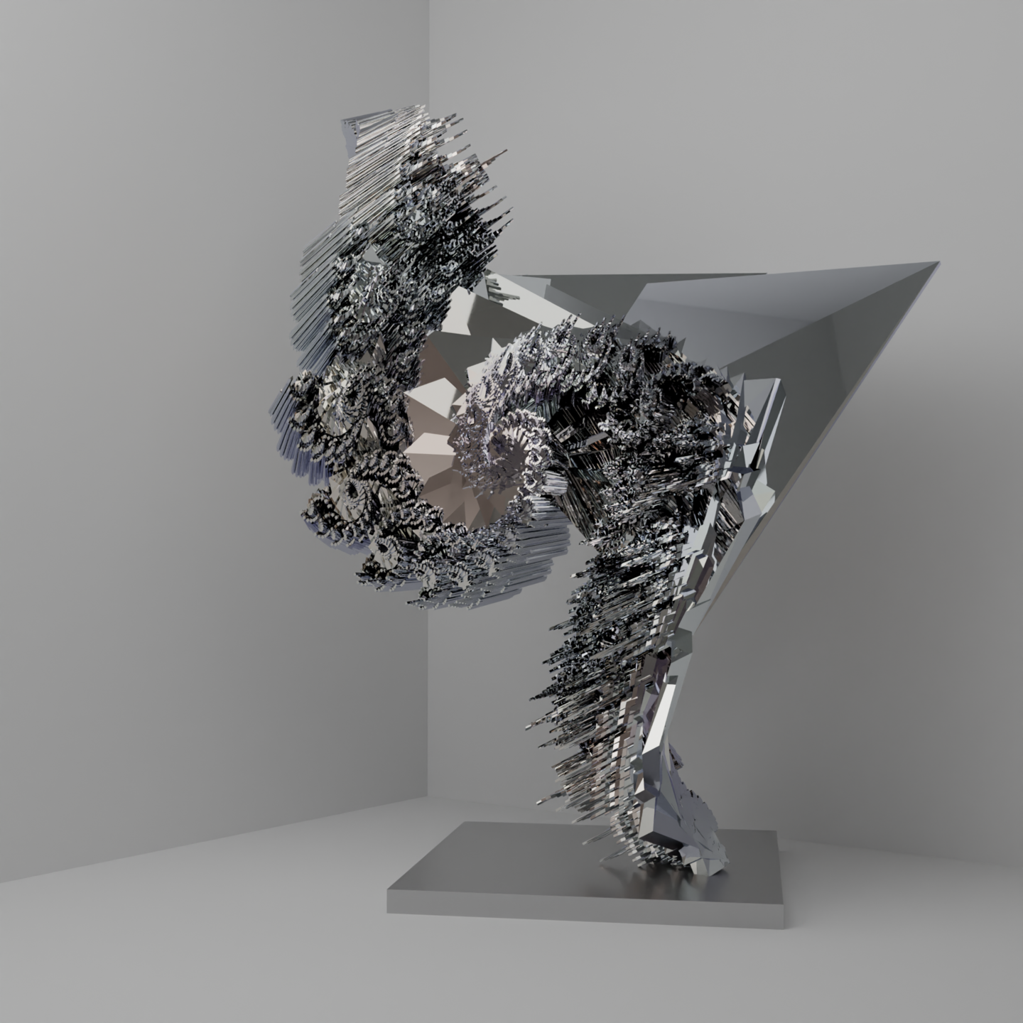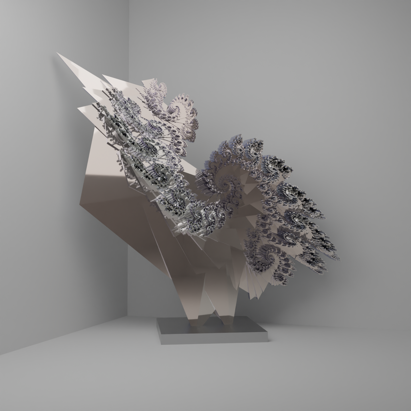 Первым и самым крупным объектом серии является «Ника», созданный на основе множества Жюлиа. Скульптура 01 «Ника» — это переосмысление образа богини победы, Ники, и скульптуры Ники Семафракийской, известнейшей античной статуи. Аллюзия на античную скульптуру не случайна, 01 «Ника» — это символ новой победы, символ торжества науки и искусства, вдохновлённый образами античности, но переданными иными средствами и отражающий современность. Вместо классической скульптуры представлена фрактальная структура, художественно обработанная при помощи скульптинга, цифрового аналога скульптуры, и набора модификаторов в 3D программе Blender. Новый художественный образ сохраняет летящий крылатый силуэт, но абсолютно не похож на античную статую богини, это сочетание изгибов металла и фрактальных завихрений, складывающееся в величественную и интересную форму.