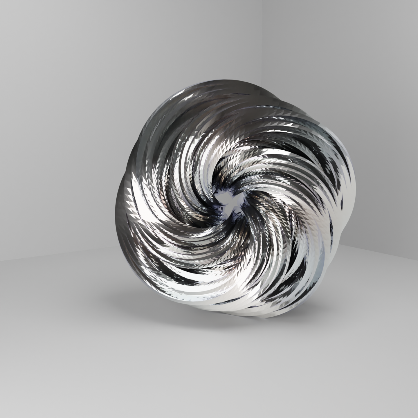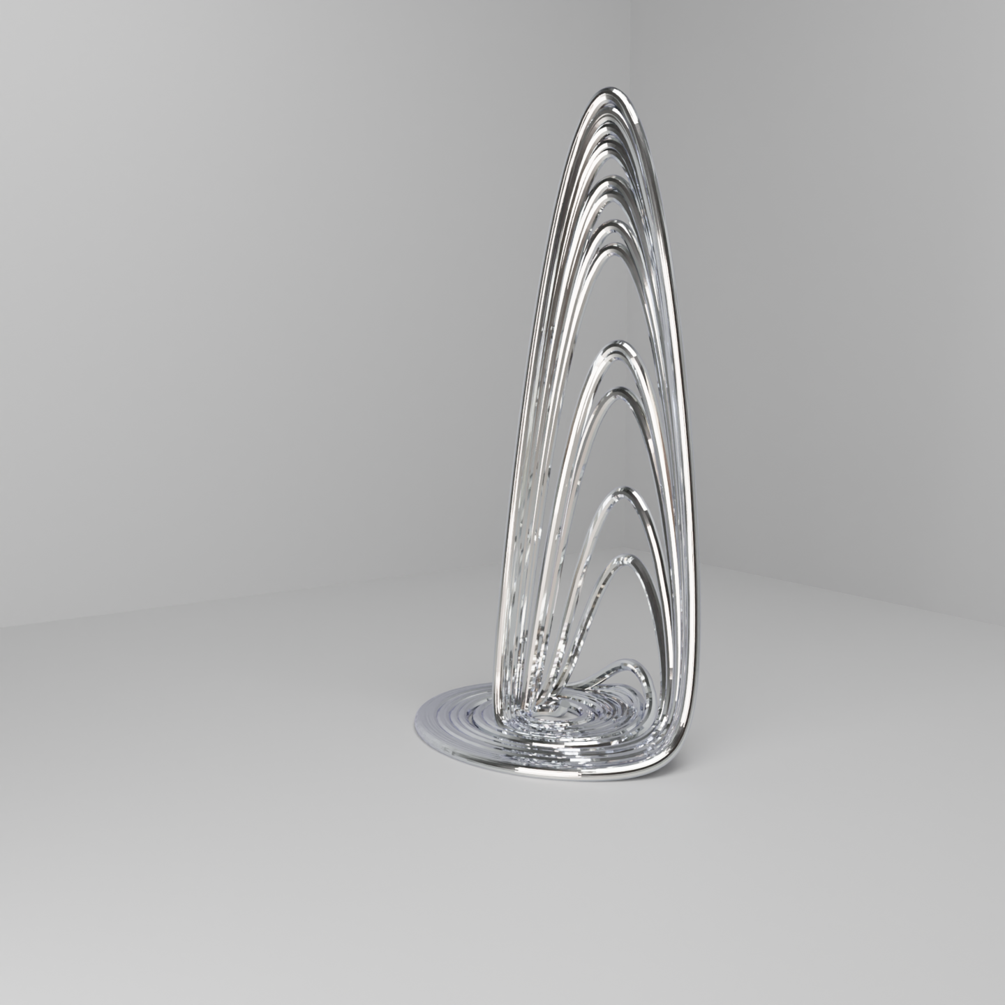 Следующая скульптура из серии представляет собой воронку жидкого металла, который словно бы выплёскивается из некого источника. Выплески раскрываются, как крылья, состоящие из множества капель-перьев. В этой скульптуре воплощён образ всплеска, взрыва, который произошёл после синтеза науки и искусства. Это схожий по смыслу объект с 02 «Импульс», но если «Импульс» — это стремление к новому, то «Воронка» — переплетение и взрыв, воплощение в металле момента синтеза и результата этого синтеза. Закрученная и разлетающаяся структура из сверкающего металла производит огромное впечатление на зрителя, поражая детализацией, экспрессивностью и динамичностью формы. Эта скульптура, несмотря на визуальную упорядоченность, создана на основе визуализации Винеровского процесса. Винеровский процесс — это стохастический процесс, который наиболее широко используется в финансовой математике для моделирования изменений цен на финансовых рынках. Названный в честь Луиса Башелье Винера, польского математика русского происхождения, Винеровский процесс также известен как процесс Броуновского движения. Он является непрерывным и случайным процессом, который имеет независимые и стационарные приращения.