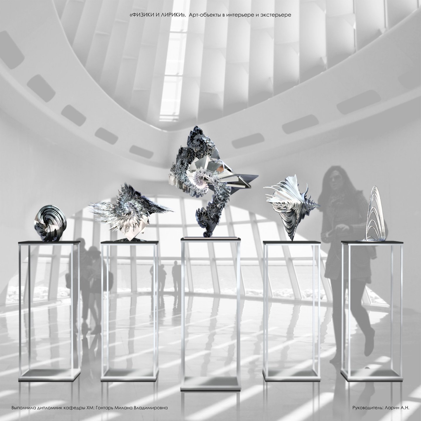«Физики и лирики», арт-объекты в экстерьере и интерьере — дипломная работа, посвящённая проблеме взаимодействие искусства и технологий в современном мире.