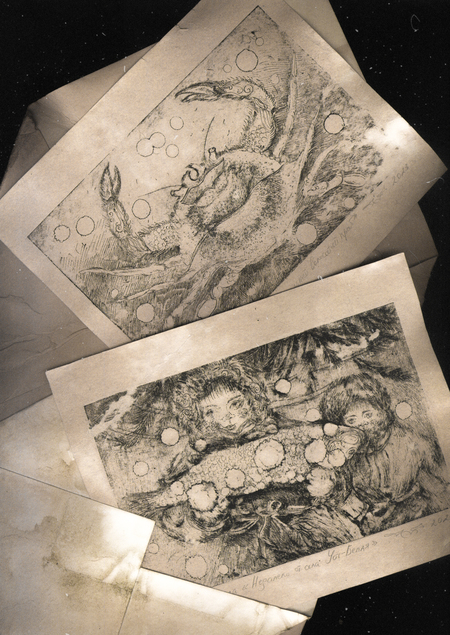 Все изображения выполнены в технике сухой иглы, в качестве матрицы использовались алюминиевые пластины. Впоследствии работы были «состарены» с помощью кофе и чая.