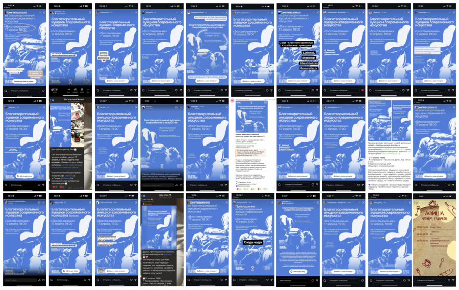 Визуальные исследования Полины Лященко «Феномен предаукционных выставок в России и мире за последние 20 лет» и Софии Ким «Русские аукционы за последние 30 лет. Что продается, а что остается в тени?» стали исследовательской базой проекта и важными этапами подготовки к благотворительному аукциону и предаукционной выставке.