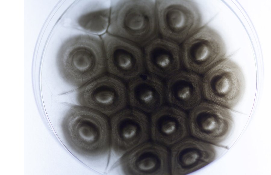 «Mechanisms of life» Орона Каттса и Ионат Цурр — инсталляция с системой биореакторов, где художники выращивают «протоклетки» (первичное и примитивное представление о жизни) в специально созданных условиях, демонстрируя процессы роста и регенерации тканей.