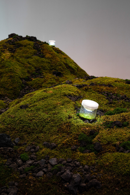 Внутри стеклянных сосудов выращивается генетически модифицированный мох, содержащий митохондриальную ДНК различных людей. Художники предлагают новый способ увековечения жизни, где мемориальная практика переносится с культурно-религиозного на биологический уровень. Мох становится не только воплощением связи с утраченной жизнью, но и объектом живой памяти, которая продолжает автономно существовать и развиваться.