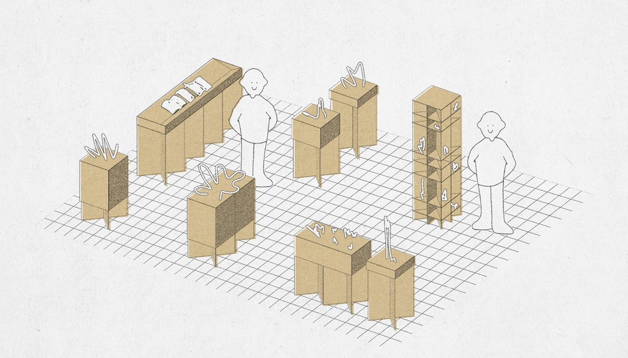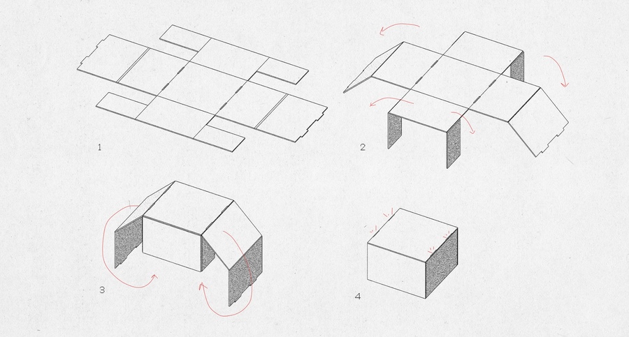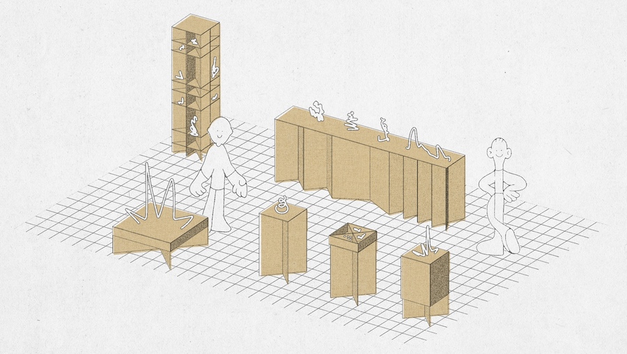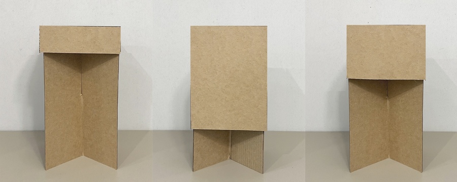 one time stand is a series of temporary stands for cardboard exhibits, focusing on simplicity of assembly and understanding of time use.
