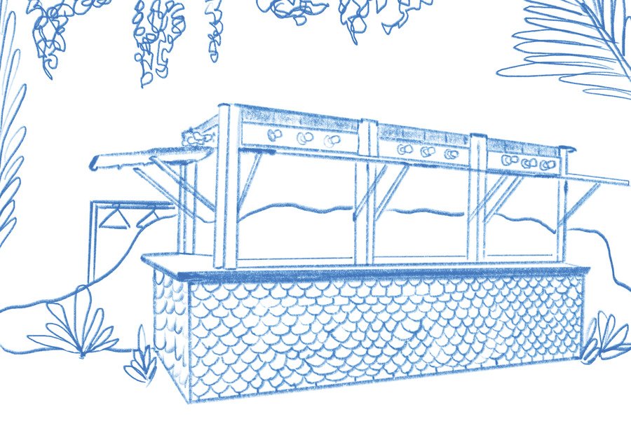 Мультибрендовый магазин «Waves» включает в себя несколько залов: — пляжная зона (зона кафе, аксессуары) — тропический лес (повседневная и верхняя одежда) — спортплощадка (одежда для активного образа жизни) — океан (украшения и косметика)