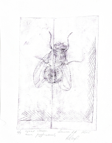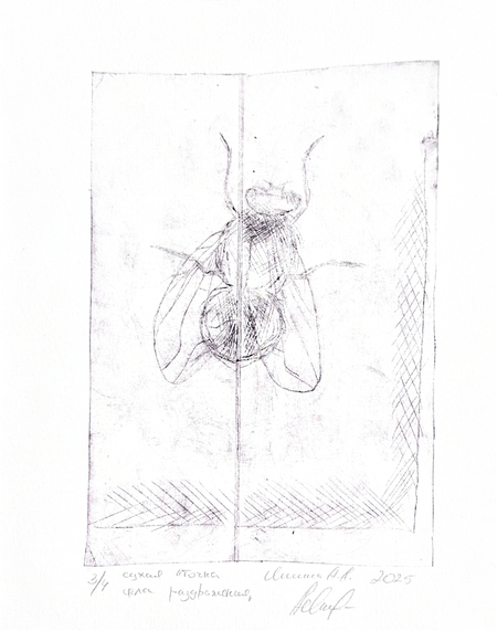 «точка раздражения» сухая игла, акварельная бумага (белая), 200×250 мм
