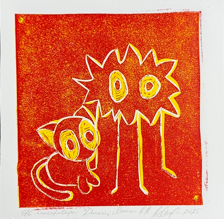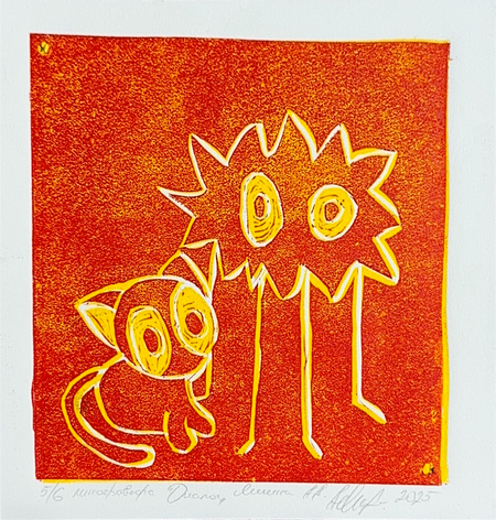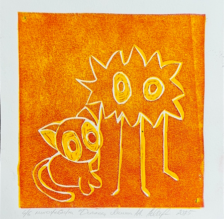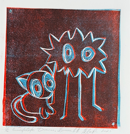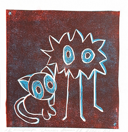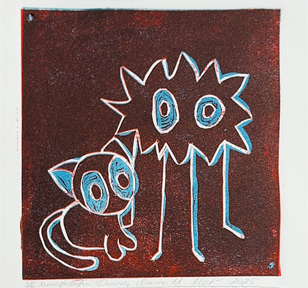 «диалог» линогравюра, акварельная бумага (белая), 180×180 мм