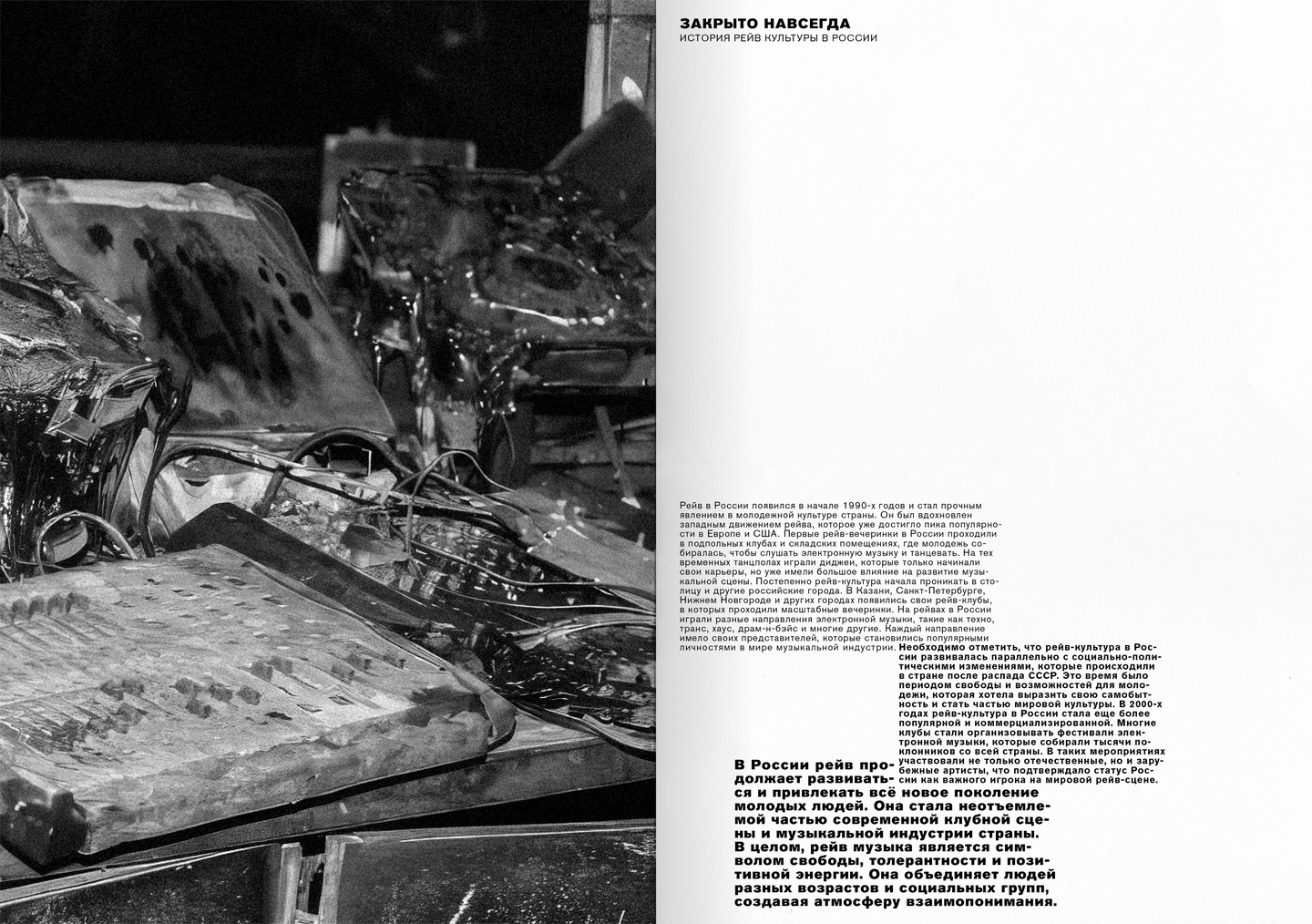 The multipage publication, which describes the history of the Russian cultural raves from the words of the pioneers of the electronic club scene, allows the myths of this culture to be dispelled. Through the stories of the participants, the reader will be able to track the development of the cultural rave, ranging from underground electronic musicians to large-scale commercial organizations.