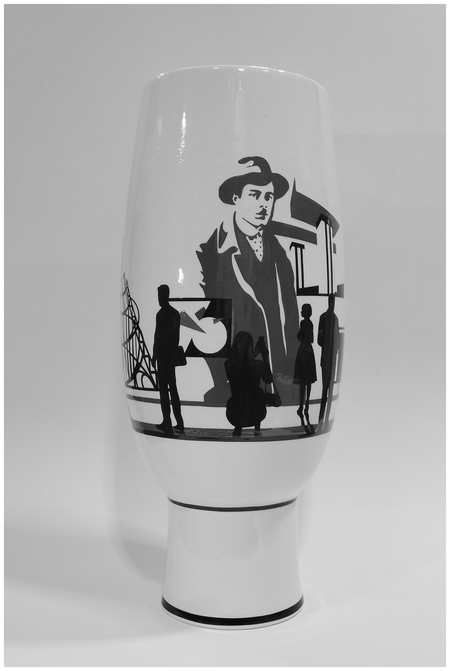 Интерьерная ваза представляет собой декоративный сосуд, выполненный методом шликерного литья из фаянсовой массы. Ваза создана для экспозиции в жилых и общественных помещениях, и представляет собой акцентную доминанту в интерьере