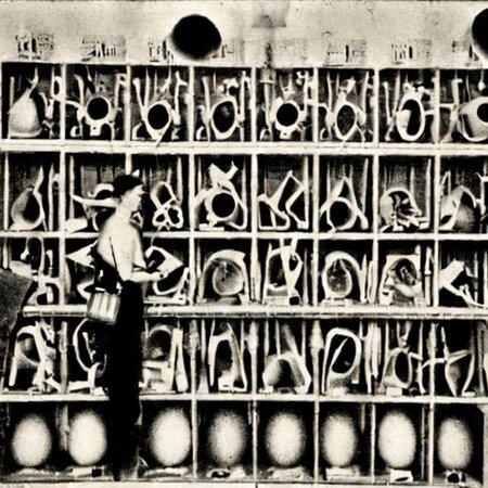 Promt в Stable Diffusion 2.1: Man Ray’s Lost and Found Office is a place where everyday objects fall into the strangest and most unexpected ways. Left without an owner, they are processed in the bureau through a special «depersonalization» scanner, after which they become independent objects with a different functional meaning. The office space consists of two parts — the first one resembles an ordinary office with a waiting room where visitors come. The second is a huge storage facility, which is an enlarged reel of film. Scans of all the items that were received by the bureau are stored there.