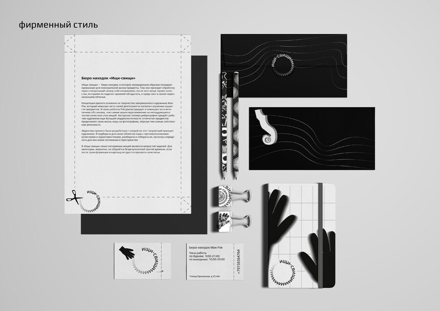 Бюро находок Ман Рэя «Ищи-свищи» — место, в которое обыденные предметы попадают самым странным и неожиданным образом. Оставшиеся без владельца, в бюро они проходят обработку через специальный сканер «обезличивания», после чего становятся самостоятельными объектами с иным функциональным значением.
