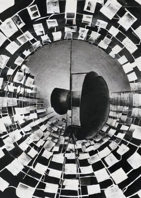 Promt для Stable Diffusion 2.1: Man Ray’s Lost and Found Office is a place where everyday objects fall into the strangest and most unexpected ways. The space of the bureau consists of a huge round inhuman storage, which is an enlarged reel of film. There are thousands of negatives of all the developed scans of objects that were received by the bureau.