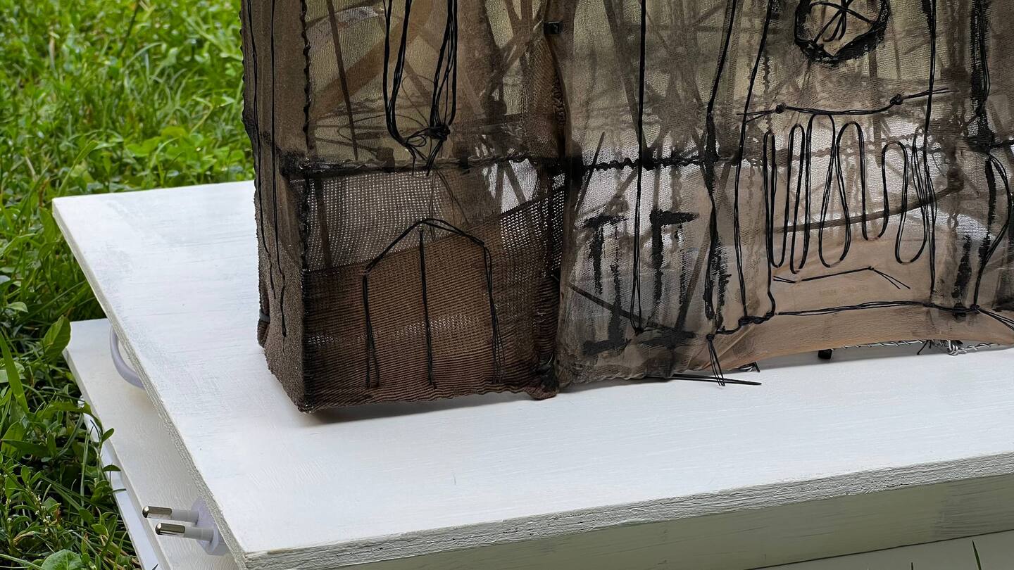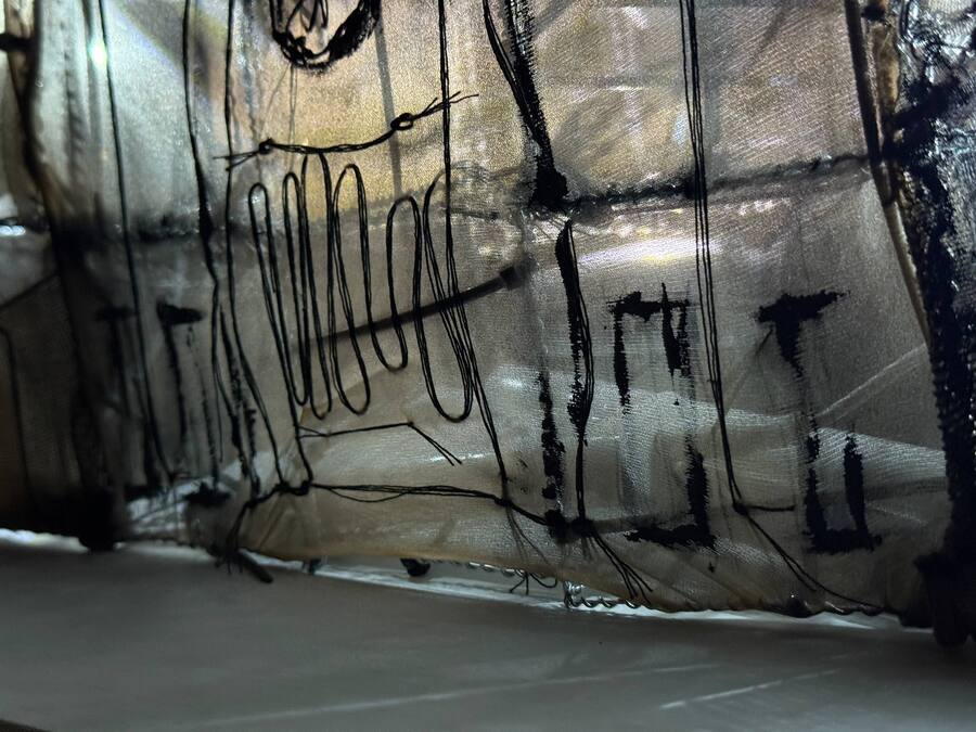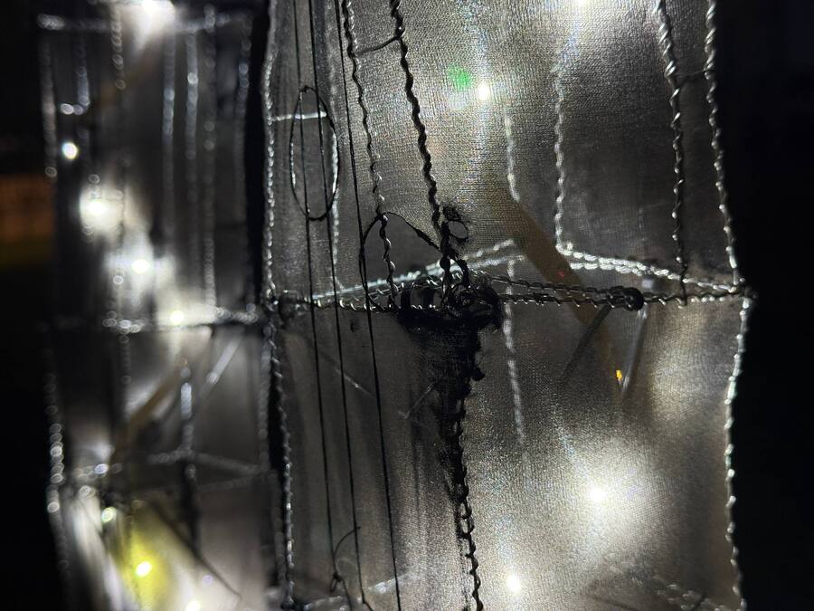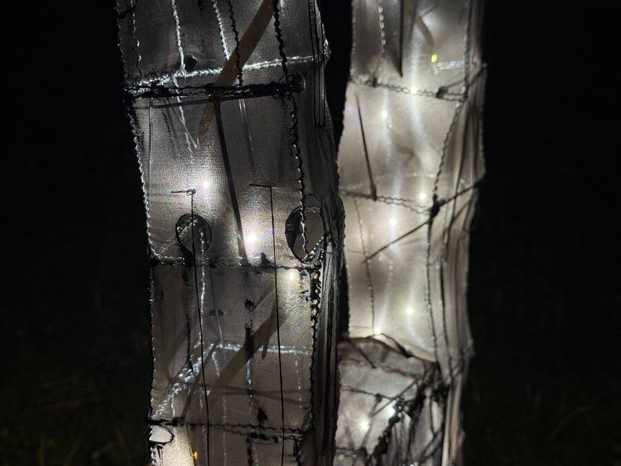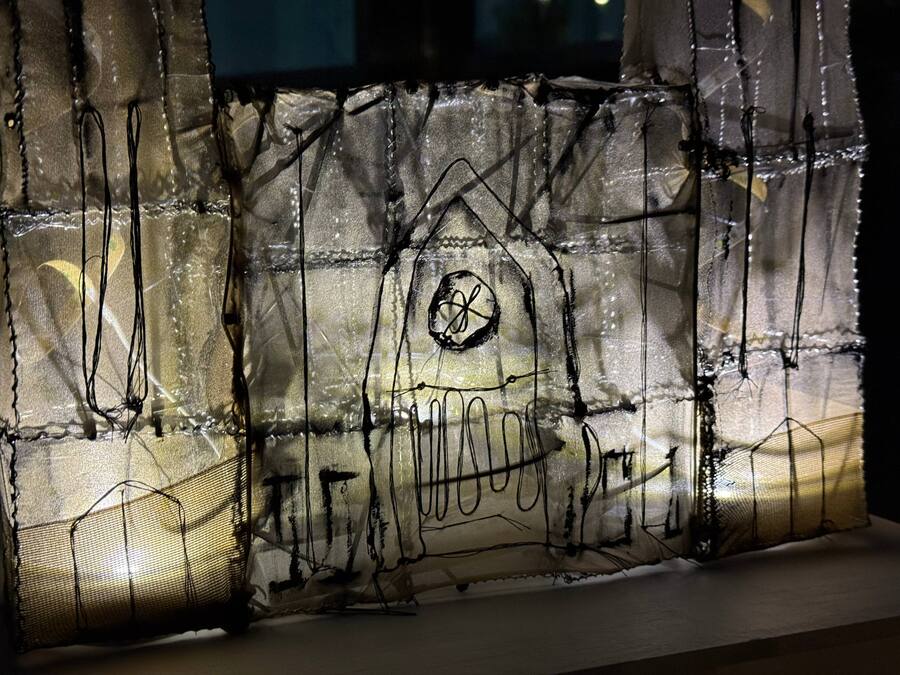 Проект «Notre-Dame» — напольный светильник, воплощающий концепцию готического собора. Он состоит из двух частей: платформы из белых фанер и брусков со спрятанным светильником внутри и верхней части — каркаса, выполненного из плетёных из проволоки кубиков и параллелепипедов, стянутых черными хомутами-стяжками. Каркас напоминает силуэт готического собора, обтянут капроновой тканью от колготок, на которой вышиты черными нитками архитектурные детали. На натянутой ткани есть небольшие дырки, густые мазки черной краски. Они добавляют выразительность, имитируя тень и текстуру готического узора. Этот проект сочетает в себе свет, материалы и текстуры, передавая атмосферу духовного величия и художественной интерпретации готической архитектуры.