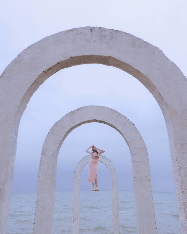 Афродита, Венера — богини красоты и любви — порождение жизни. Округленный горизонт намекает на цикл. Круг — идеальная форма, символ жизни, бесконечности. Вода — стихия, которая так же отсылает нас к зарождению, жизни, чувству безопасности, движению и силе. Врата-преодоление, прохождение и та же цикличность. А нежные цвета указывают на хрупкость и временность бытия.