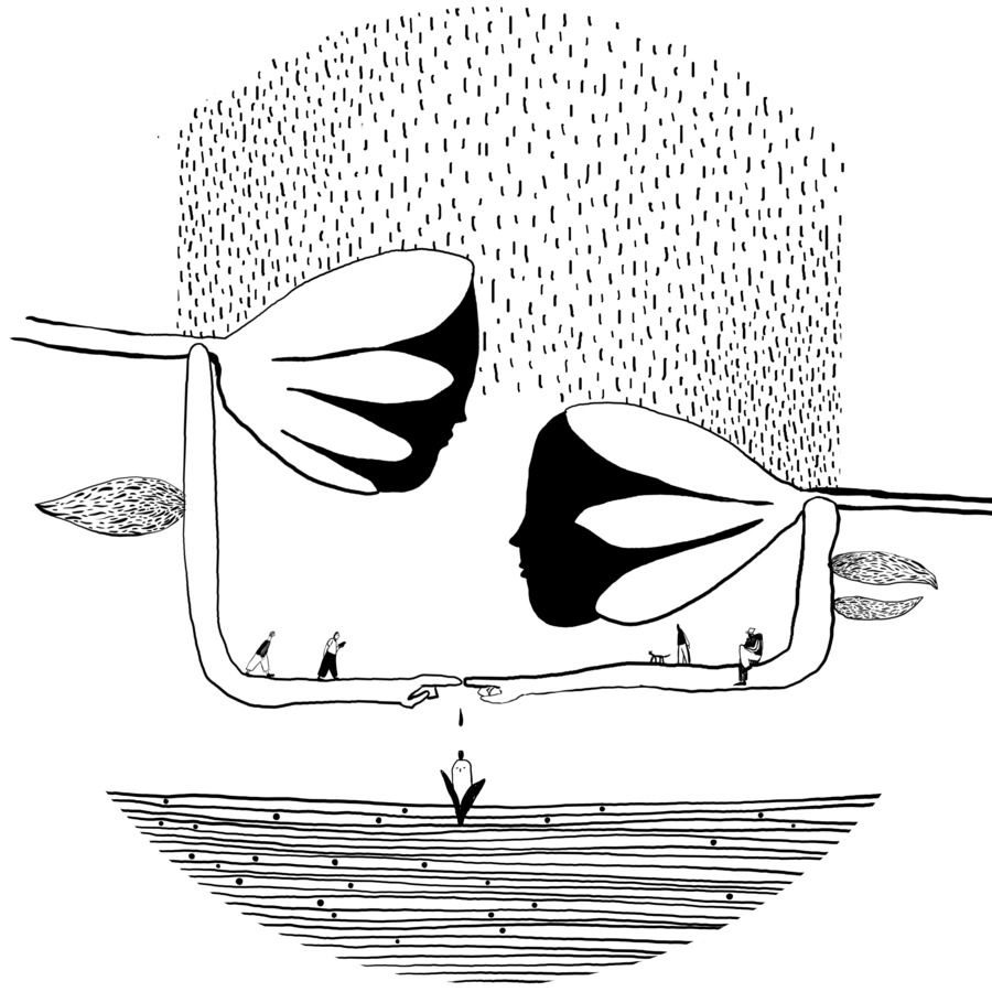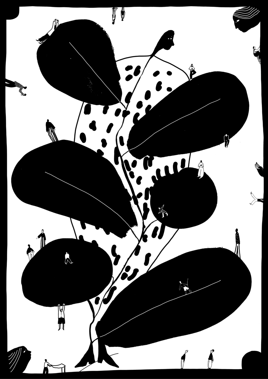 Застолье — это момент, когда самые разные люди объединяются одним делом и одним местом. Вместе они становятся единым организмом, а его динамика меняется от минуты к минуте. Иллюстрация обращается к застольям неизбежным, когда собеседники вынуждены начать и продолжить разговор во что бы то ни стало.