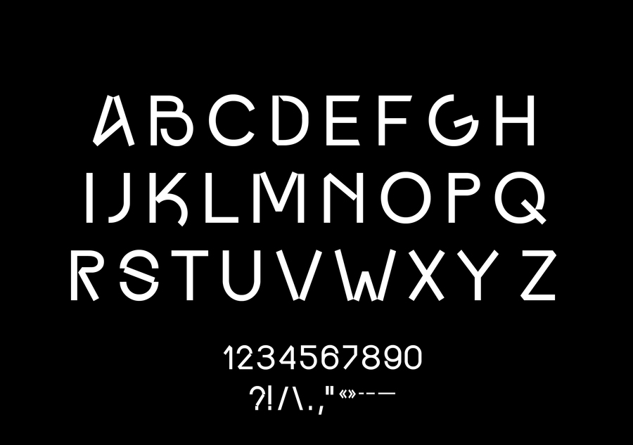 Шрифт построен на элементах-звеньях, которые, как деревянная игрушка змейка, не всегда могут срастись в одну линию.