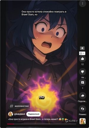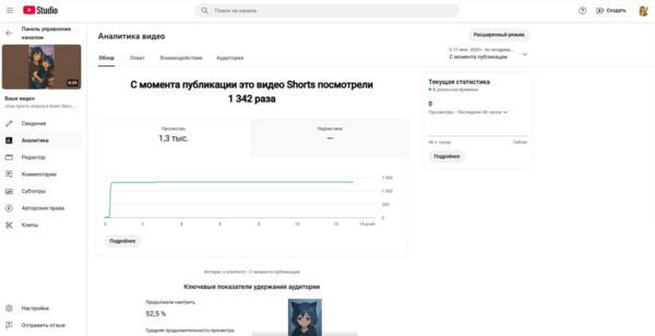 Готовое видео я выложила в двух форматах: в TikTok и на YouTube Shorts. На YouTube ролик набрал 1342 просмотра, 12 лайков и 1 комментарий. Среднее удержание составило 52,5%, что говорит о заинтересованности зрителей. В TikTok охват был ниже — 440 просмотров, но вовлечённость оказалась выше: 12 лайков и 3 комментария. Этот опыт показал, что нестандартный и визуально яркий контент, созданный с участием нейросетей, способен привлекать внимание в коротких видеоформатах. Особенно хорошо он работает в развлекательной среде, где абсурд и неожиданность воспринимаются положительно.