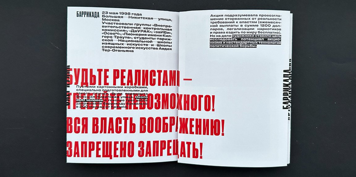 Акционизм (искусство действия) — направление в авангардизме, заменяющее традиционное предметное произведение инсценированными событиями и процессами, происходящими в реальном пространстве и времени. Проект представляет собой каталог акционизма, в котором собраны наиболее известные акции, возникшие в России.