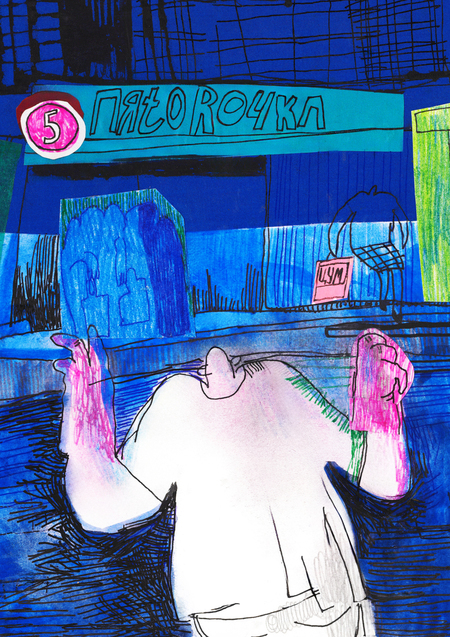 Мы стараемся не смотреть охраннику в глаза, чтобы не стать подозреваемым в «случайном» воровстве.