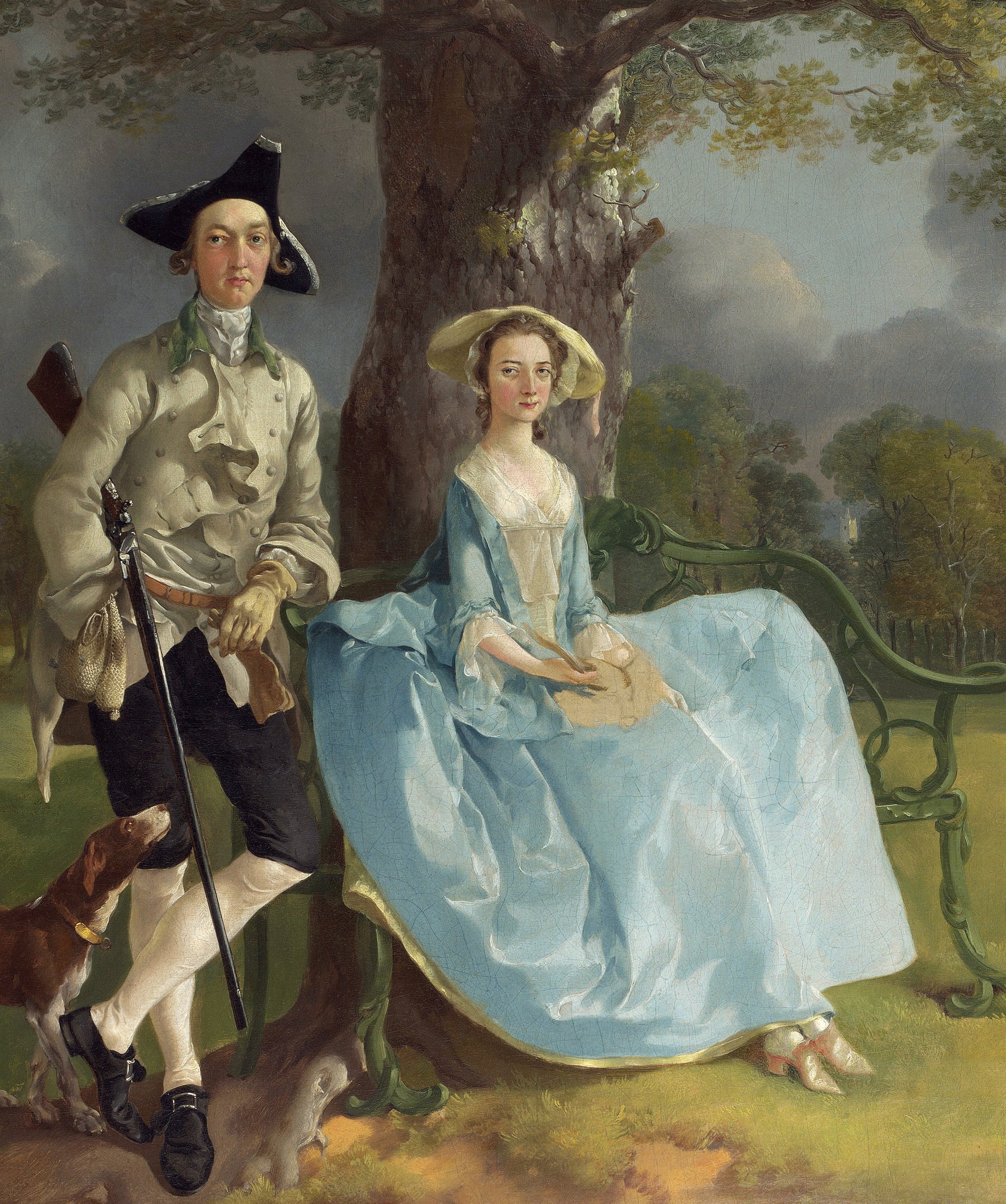 Композиционно фигуры смещены влево, что позволяет зрителю в полной мере оценить пейзаж. Гейнсборо с особой тщательностью выписывает природу поместья: густые кроны деревьев, травы и поля. Справа от пары раскинулось золотистое пшеничное поле, а вдалеке виднеется ограда, отделяющая пастбище с овцами. Этот брак был, прежде всего, деловым союзом: семьи Роберта и Френсис принадлежали к классу джентри, были соседями и владели обширными землями. Объединение их поместий укрепляло социальное положение и влияние. Картина воплощает идеалы английского поместного дворянства. Её главная задача заключалась в демонстрации благосостояния, богатства и статуса.