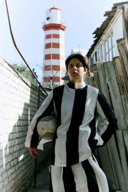 Анжи-кала, fw2025 Коллекция обращается к атмосфере района Махачкалы, который в наши дни называется «Горка», но когда-то давно носил название «Арка»: «На этих улицах селились первые жители города, моряки, рыбники, портовые служащие и торговцы»[источник].