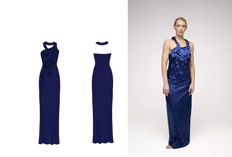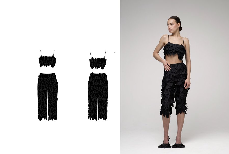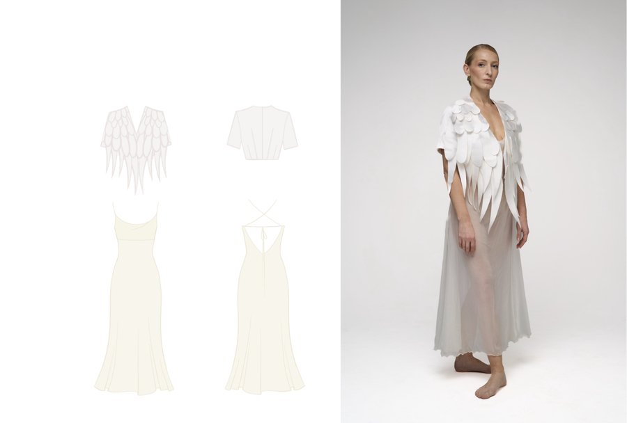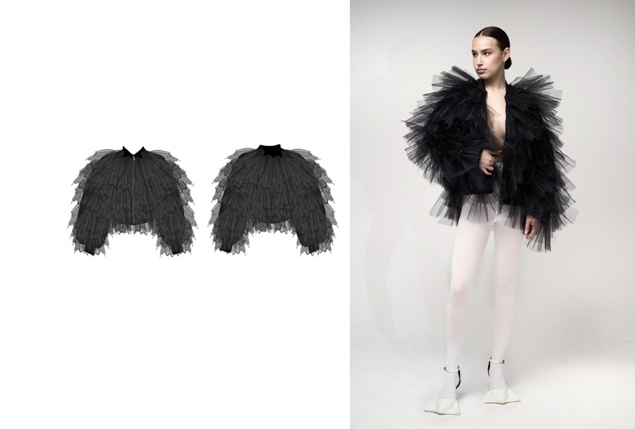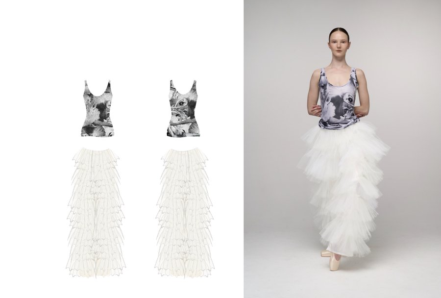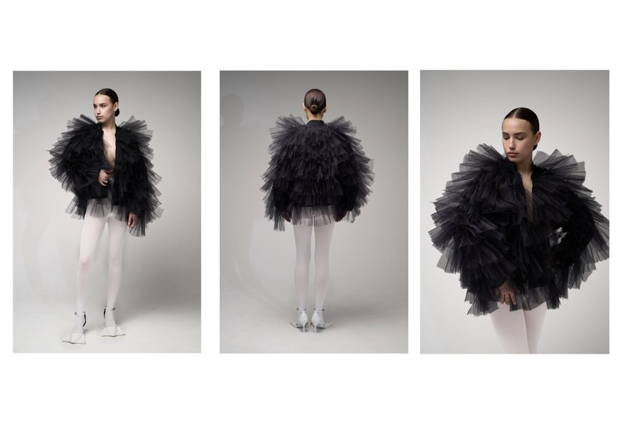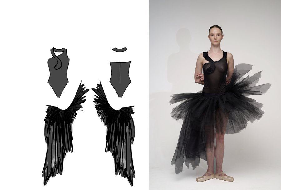 Концепция коллекции базируется на классической партии балета «Умирающий лебедь». В своем проекте автор сопоставляет образ лебедя в природе и его сценическое воплощение. Изучение истории создания балетной партии, анализ технических особенностей исполнения и характерных поз помогли определить основные принципы реализации проекта и его визуальное решение. Конечный результат представляет собой коллекцию, интегрирующую элементы классического балета и современные художественные приемы. При этом природная эстетика лебедя трансформирована в контексте театрального искусства.