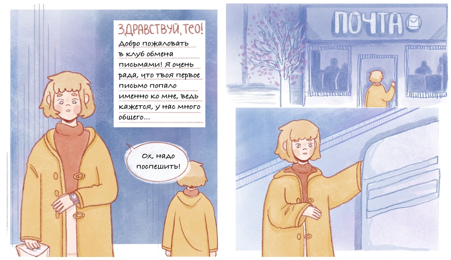 Нина возвращается домой с очередным письмом, ведь она — участница клуба по обмену письмами. Но в этот раз ей попадается не обычное письмо с радостным рассказом о месте жительства отправителя. Нина читает откровение такого же одинокого, как она, мальчика Тео и спешно отправляет ему ответ, в надежде на дружбу по переписке.