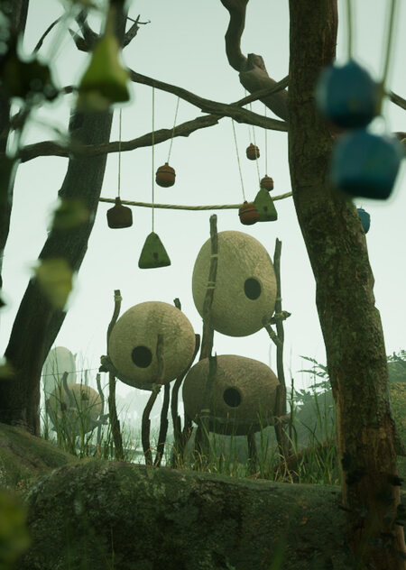 Locacia is made in Unreal Engine with use of Megascans Assets. The unique objects (needs, bells, « live» flowers of unclear origin) were created in Autodesk Maya.