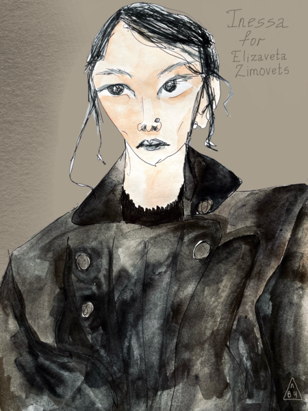 Серия фешн-скетчей с показа AUXI HAOS бренда ZIMOVETS