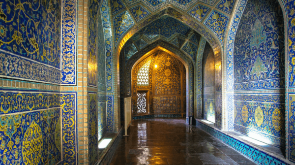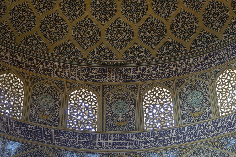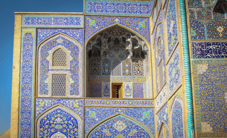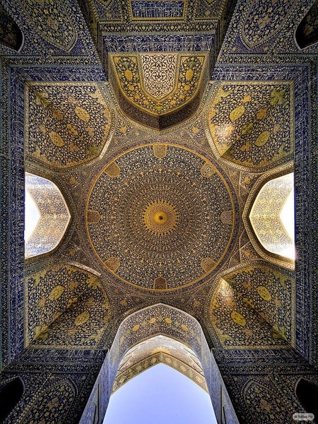 Интерьер и экстерьер мечети Исфахан (Иран) украшен красивейшими арабесками с преобладанием синего цвета.