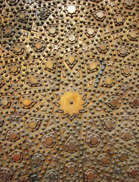 Исламский орнамент гирих — сложный геометрический узор из звезд и многоугольников на портале медресе.