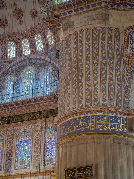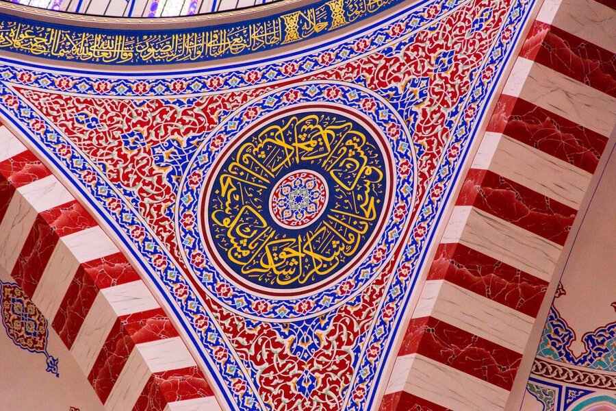 Каллиграфические фризы, надписи на михрабе, цитаты из Корана на порталах и куполах говорят не только о вере, но и структурируют пространство, задают ему духовную направленность.