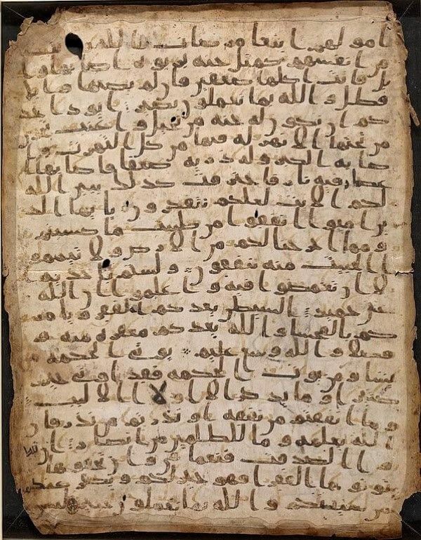 Фрагменты манускрипта, известного как «Бирмингемский Коран» (Mingana Collection, Univ. of Birmingham). Радиоуглеродные данные указывают на очень раннюю дату пергамента (приблизительно VII в.)