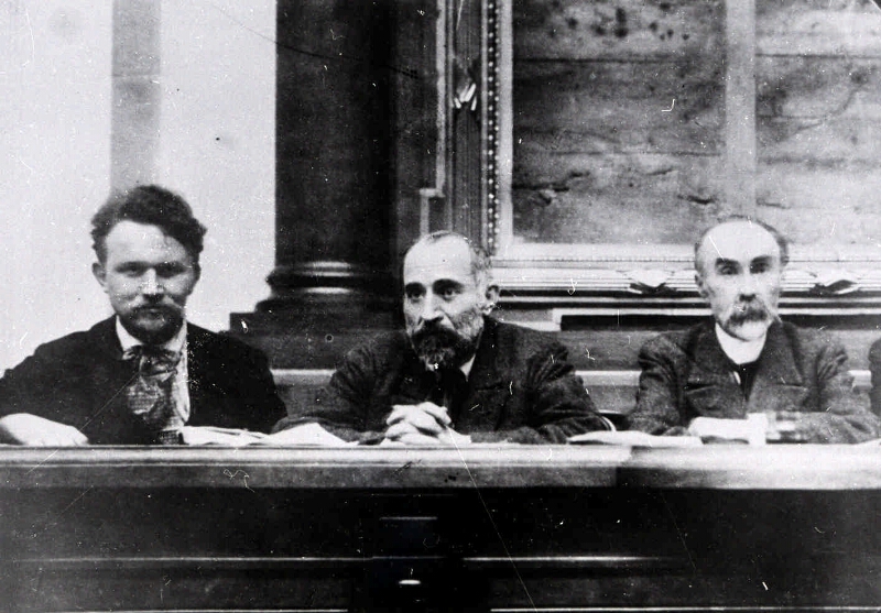 М. И. Скобелев, Н. С. Чхеидзе, Г. В. Плеханов в Президиуме I-го Всероссийского съезда Советов рабочих