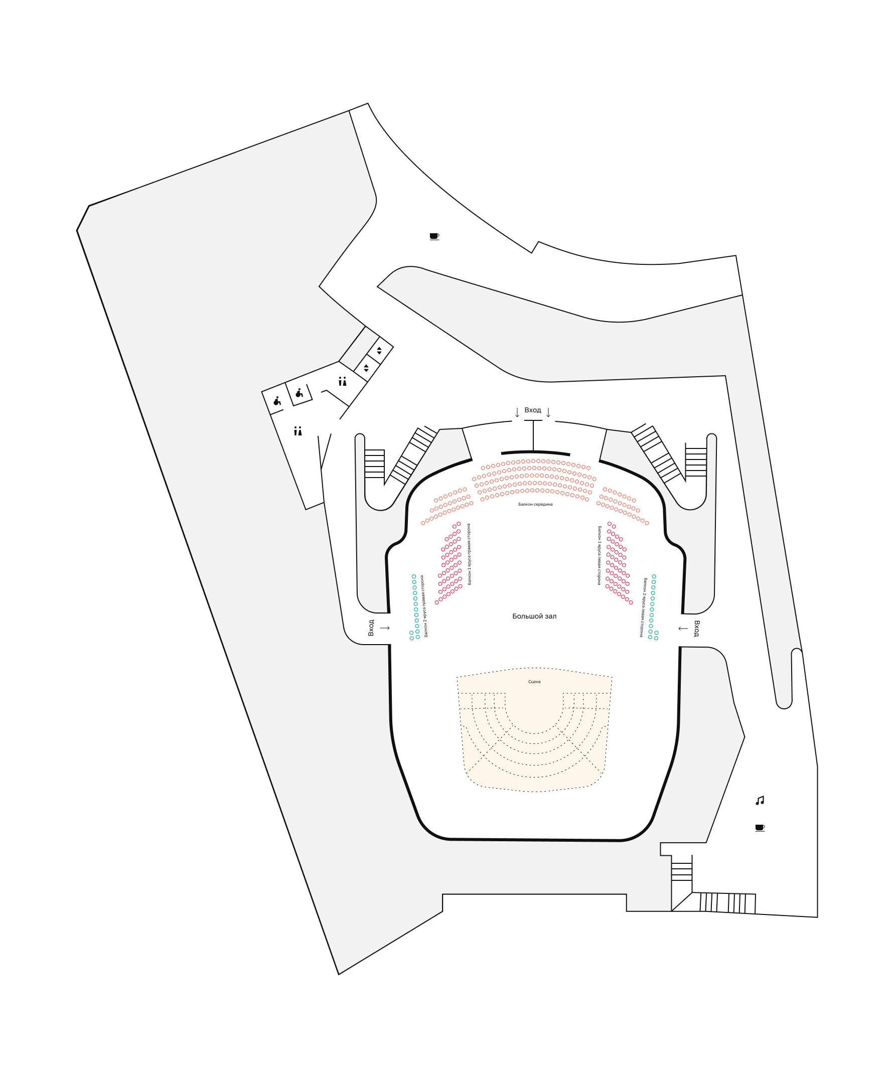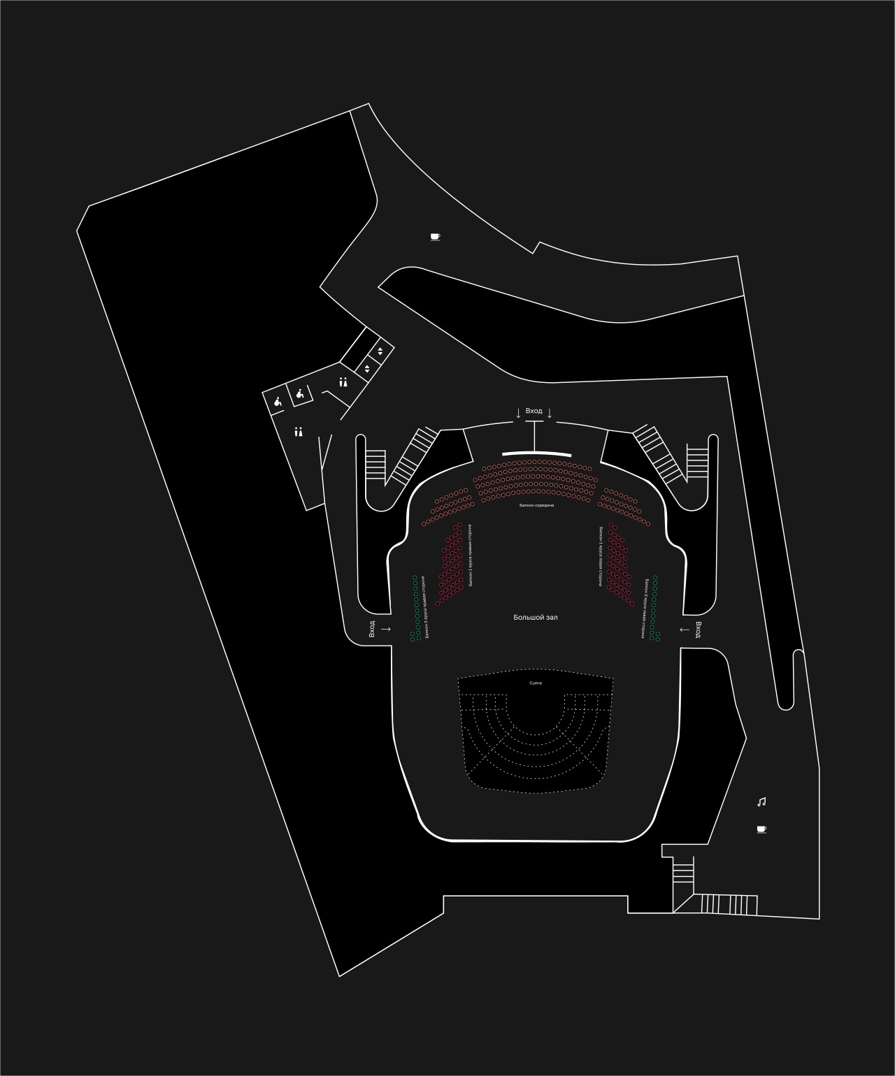Схема Большого зала, расчитан на 1541 зрителей